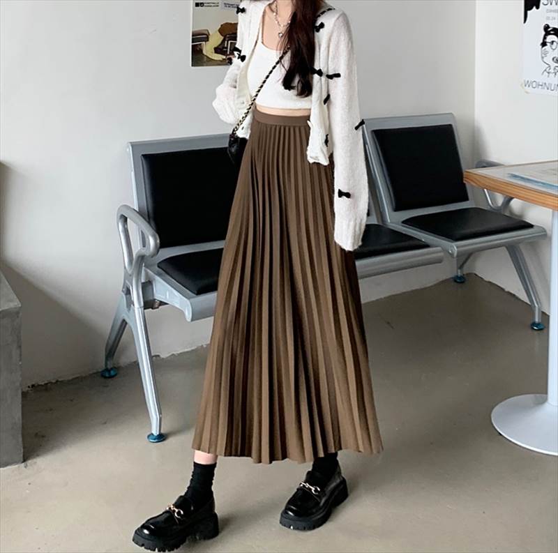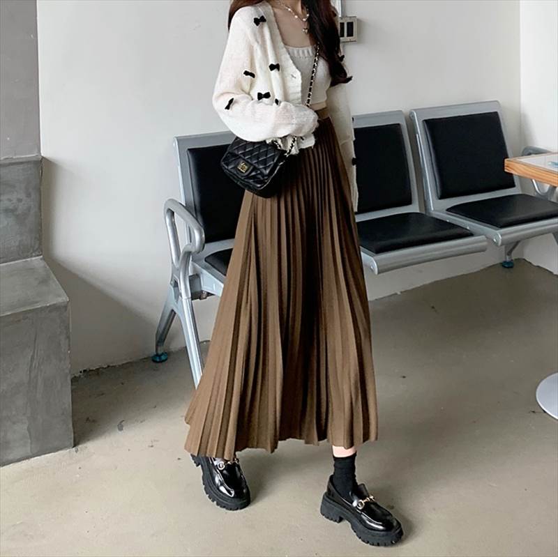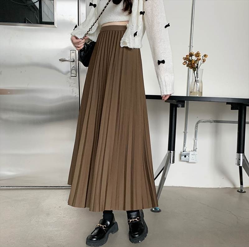 スカート ロングスカート プリーツスカ レディースファッション 特集 ブラック カーキ ブラウン XS S M L XL