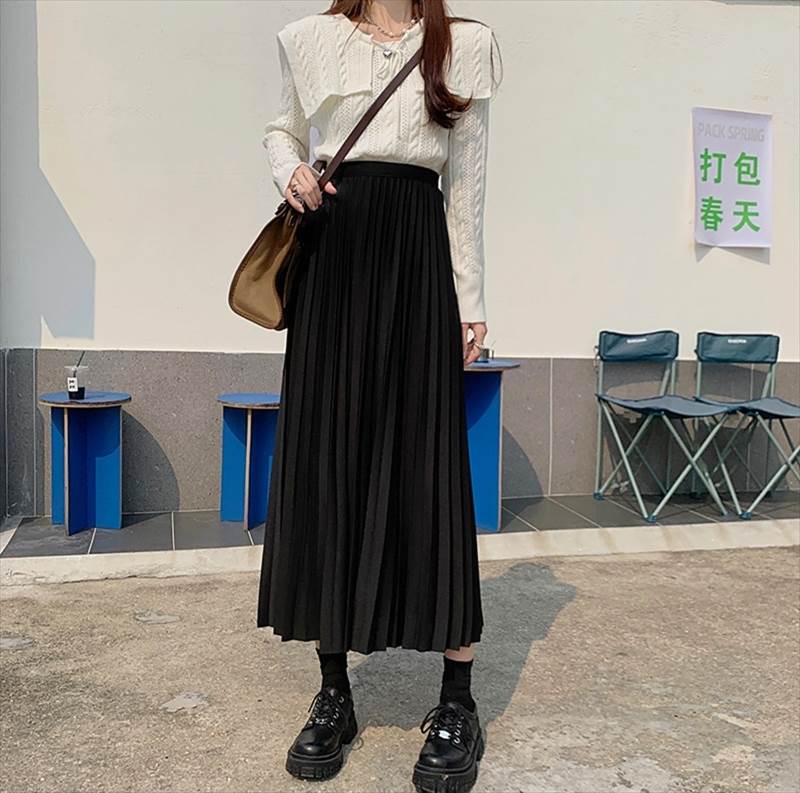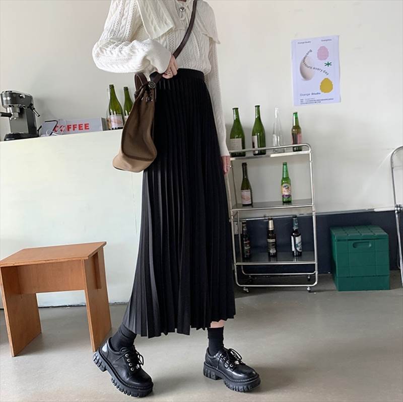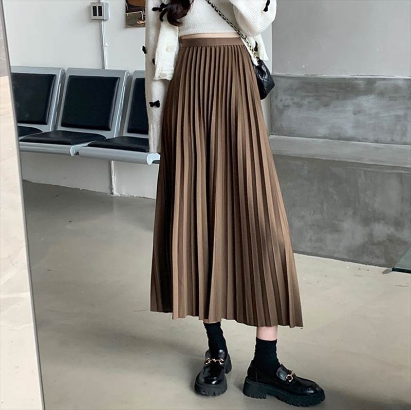スカート ロングスカート プリーツスカート ミモレ丈 フレア ストレート Iライン プリーツ ハイウエスト 薄手 大人可愛い きれいめ シンプル カジュアル 大人 上品 お洒落 レトロ クラシック 大人女子 こなれ感 ガーリー 主役級 抜け感 無地 春 秋 冬 20代 30代 40代 ママ 通勤 学生 通学 デート お出かけ 女子会 休日 運動 旅行 着回し 普段使い 体系カバー 定番 トレンド 流行 インスタ映え XS S M L XL ブラック カーキ ブラウン