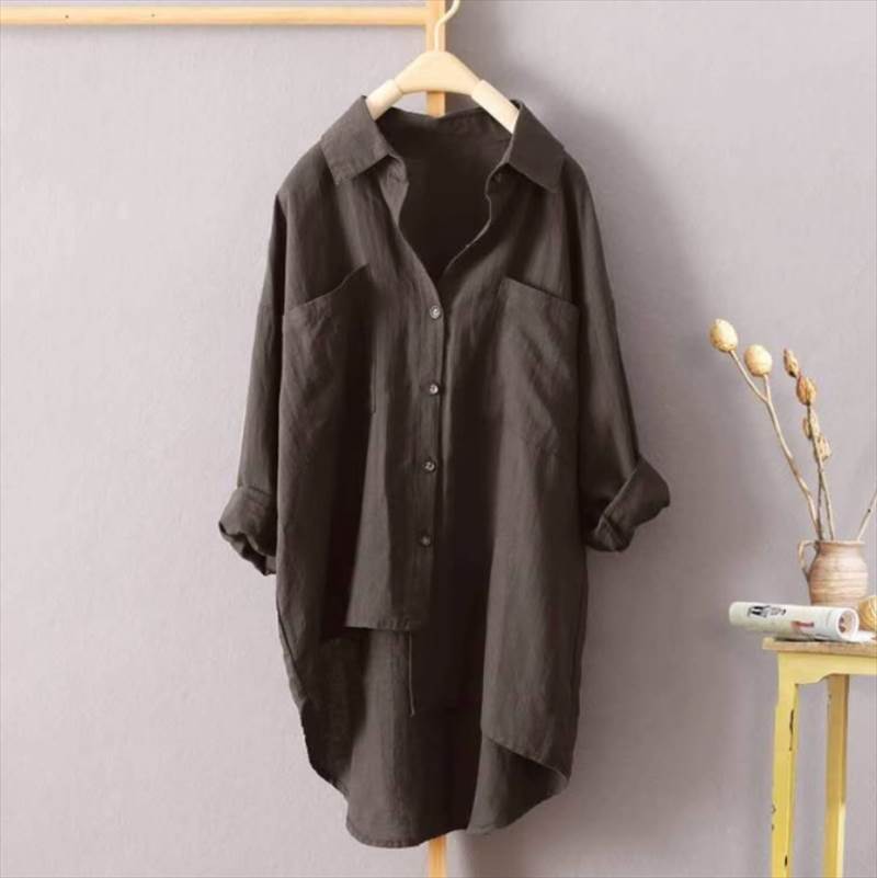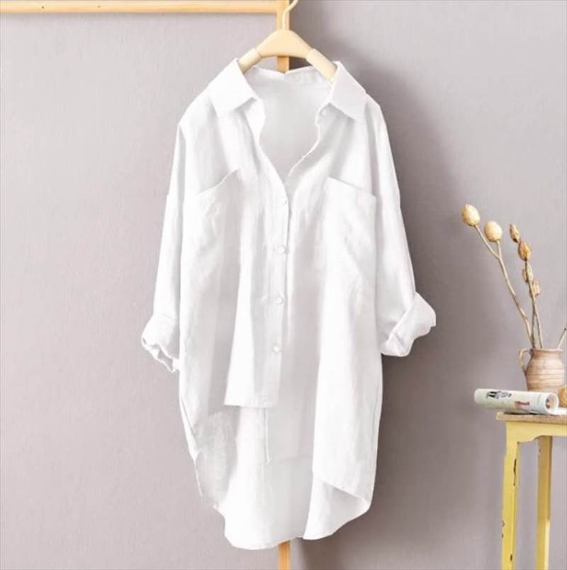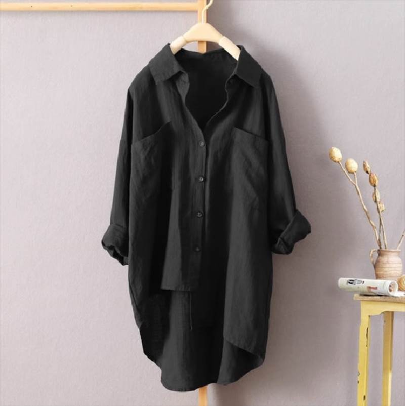大人可愛いシャツが入荷しました!お尻まですっぽり隠れるロング丈で後ろは長めにデザインされた一枚です。Vネックが女性らしさを引き立て、カジュアルからきれいめまで、様々なスタイルに合わせられるアイテムです。さらに、デートやお出かけ、休日のコーディネートにもおすすめです。シンプルでありながらかわいらしさも兼ね備えたデザインで、女性らしさを演出します。幅広いサイズ展開で、どんな体型の方にも対応しています。定番カラーの白、黒、カーキ、ネイビーの中からお好みの色をお選びください。このシャツはあなたのおしゃれなワードローブに必ず活躍すること間違いなしです!