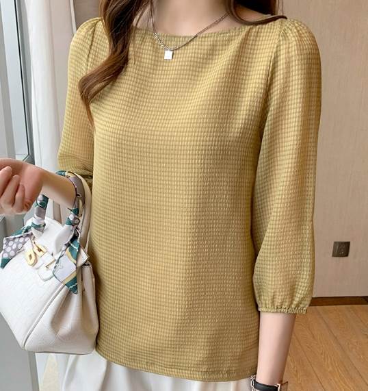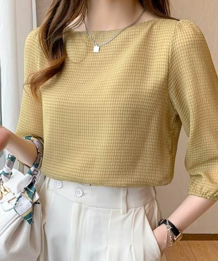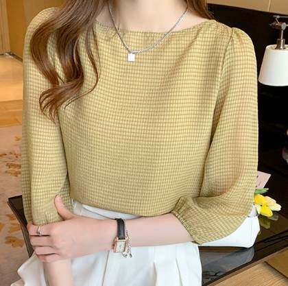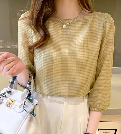 レディース トップス シャツ プルオーバー 7分袖 ラウンドネック ストレート 大人可愛い きれいめ シンプル カジュアル 上品 おしゃれ レトロ ラフ エレガント ナチュラル シック ギンガムチェック 春 夏 20代 30代 40代 50代 60代 デート お出かけ イベント 旅行 レストラン 女子会 休日 高原 ガーデン ショッピング お花見 カフェ 図書館 散歩 食べ歩き 楽ちん 普段使い 着回し S M L XL 2XL 黒 ブラック 黄色 イエロー