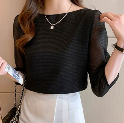 レディース トップス シャツ プルオーバー 7分袖 ラウンドネック ストレート 大人可愛い きれいめ シンプル カジュアル 上品 おしゃれ レトロ ラフ ナチュラル シック ギンガムチェッ エレガント