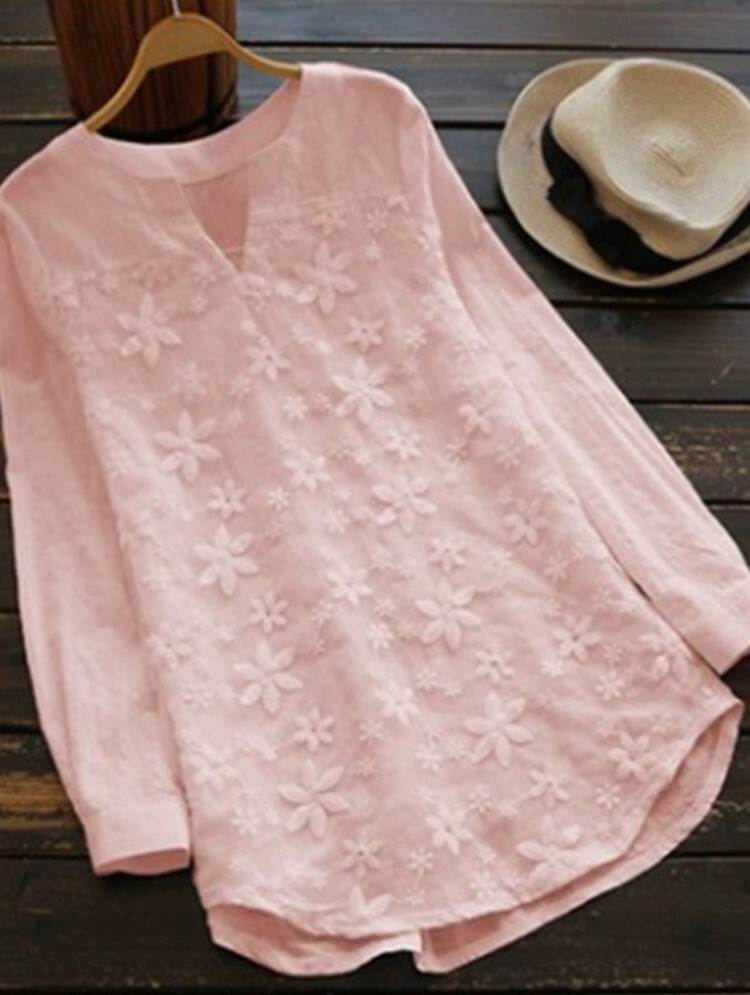 トップス シャツ ブラウス チュニック 長袖 刺繍 花柄 ベーシック 自然体 ブラウス 袖あり ボートネック 襟なし ストレート 綿 薄手 コットン かわいい 可愛い きれいめ シンプル カジュアル 大人 上品 おしゃれ お洒落 大人可愛い 大人女子 こなれ感 ラフ ラブリー キュート ガーリー 抜け感 春 夏 秋 10代 20代 30代 40代 50代 60代 レディース 女性用 学生 通学 デート お出かけ 休日 着回し 普段使い 楽ちん S M L XL 2XL 3XL ピンク 白 水色 ネイビー