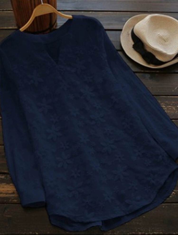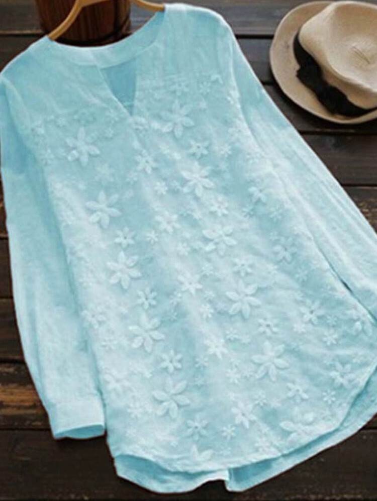 トップス シャツ 長袖 刺繍 花柄 ボ レディースファッション 42%Off ライトブルー ホワイト ピンク ネイビー S M L XL 2XL 3XL