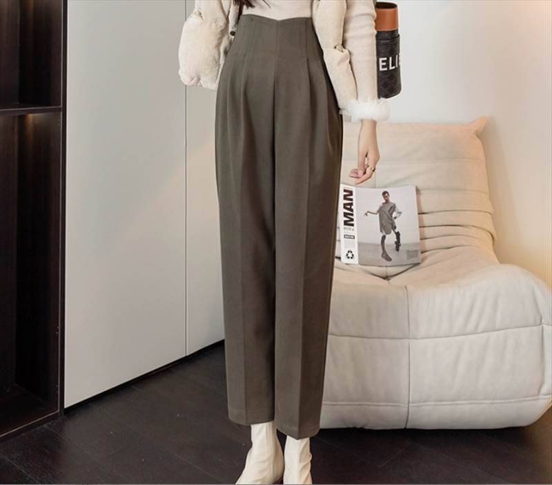 ボトムス パンツ クロップドパンツ スリム ストレート スマート ハイウエスト 大人可愛い きれいめ シンプル 上品 おしゃれ レトロ マニッシュ 春 夏 秋 オールシーズン シーズンレス 10代 冬