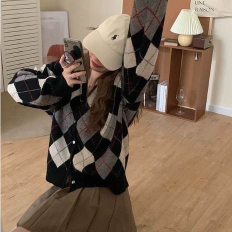 トップス カーディガン 袖付き 長袖 襟なし Vネック 前開き ボタン ニット かわいい 大人可愛い きれいめ シンプル 大人 上品 おしゃれ かっこいい 大人女子 レトロ こなれ感 ラフ クール モダン キュート 個性的 主役級 存在感 アーガイル柄 秋 冬 10代 20代 レディース 学生 通学 デート お出かけ 女子会 お泊まり 休日 リゾート 旅行 ホテル ショッピング レストラン イベント アウトドア 着回し 普段使い 重ね着 S M L 暖かい 防寒 ゆったり ファッション コーデ スタイル