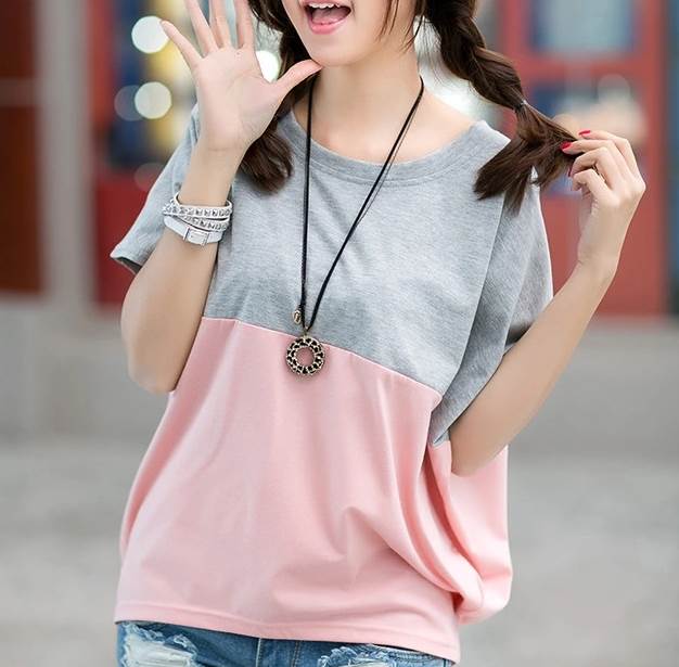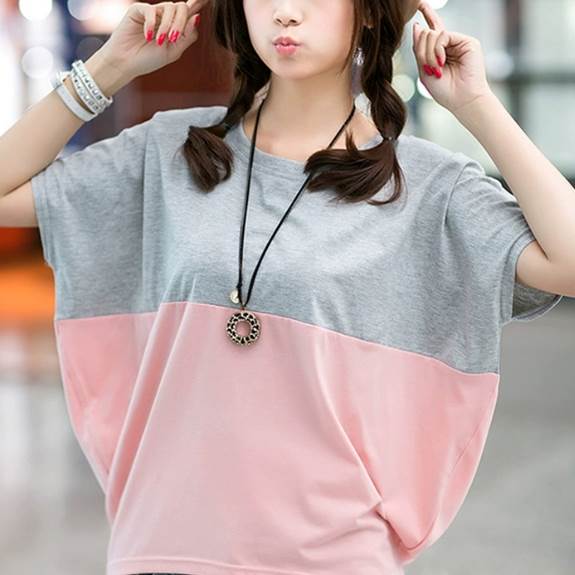 トップス カットソー Tシャツ プルオ レディースファッション 特集 グレー×ピンク ホワイト×ピンク ホワイト×ネイビー M L XL 2XL 3XL