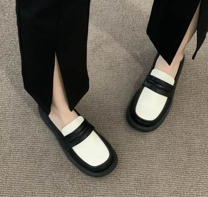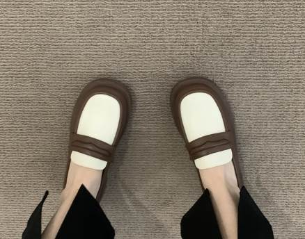 バイカラーデザインがおしゃれな厚底スリッポン。ボリューム感のあるヒールの高さは3cm。程よい暑さで歩きやすさ◎長時間歩く日にも重宝します。シックなカラーなので柄物のアイテムとも相性抜群。花柄ワンピースを合わせても可愛いです。