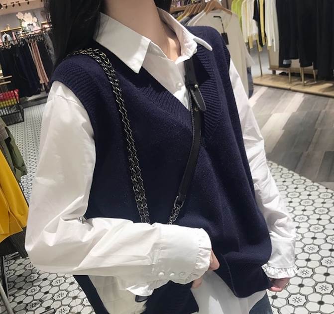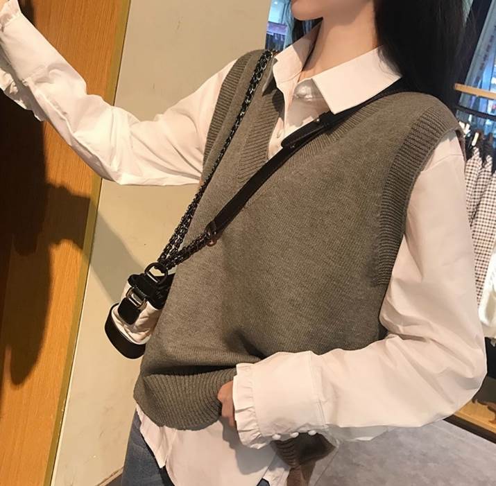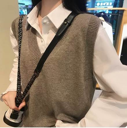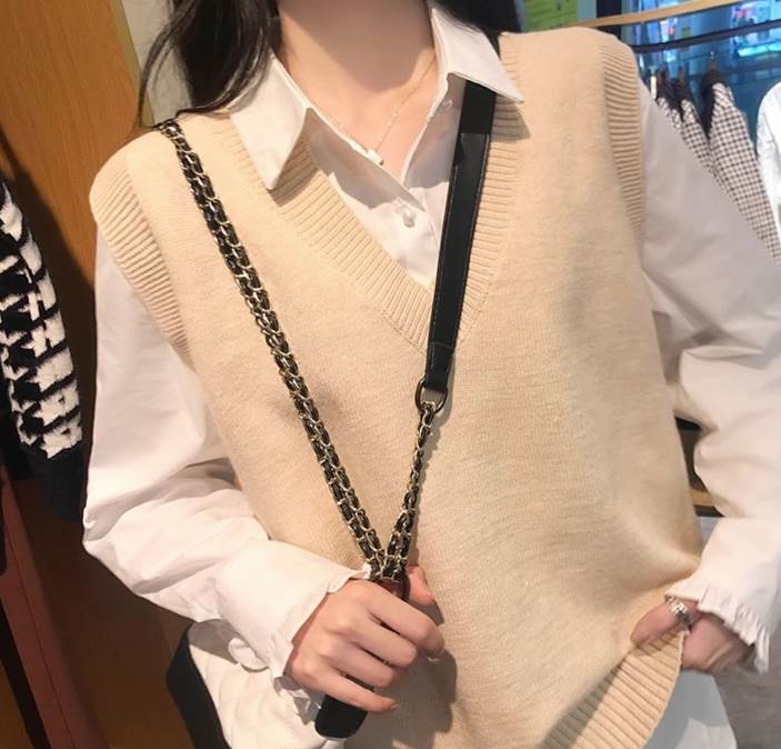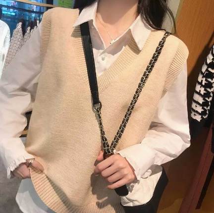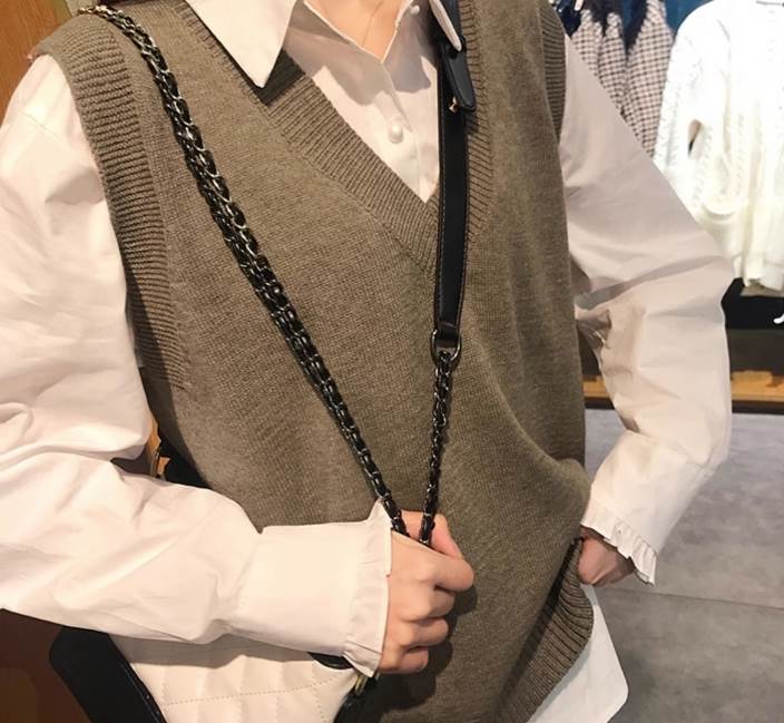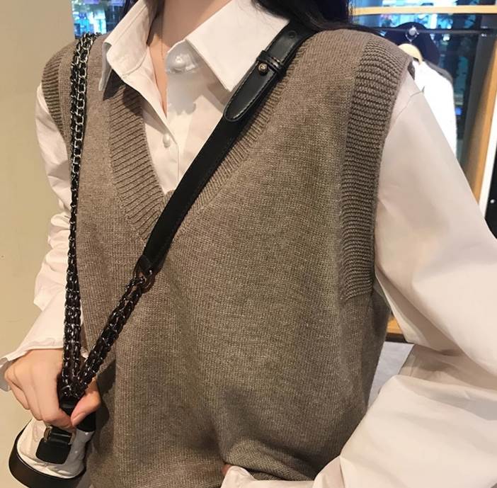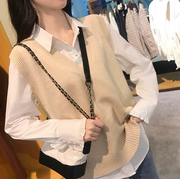 トップス ベスト ニット 重ね着 Vネ レディースファッション 豊富 ブラウン ブラック アイボリー ネイビー S M L XL