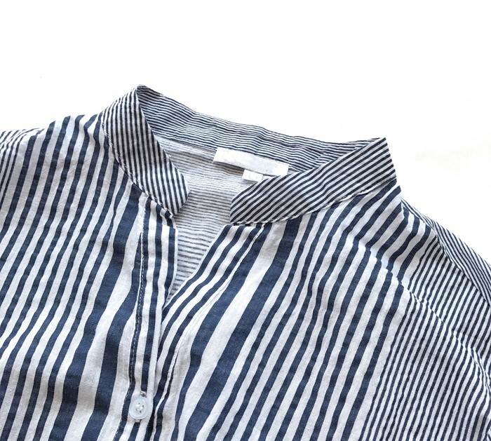 トップス シャツ ストライプ スタンド トップス シャツ ブラウス 割引 M L