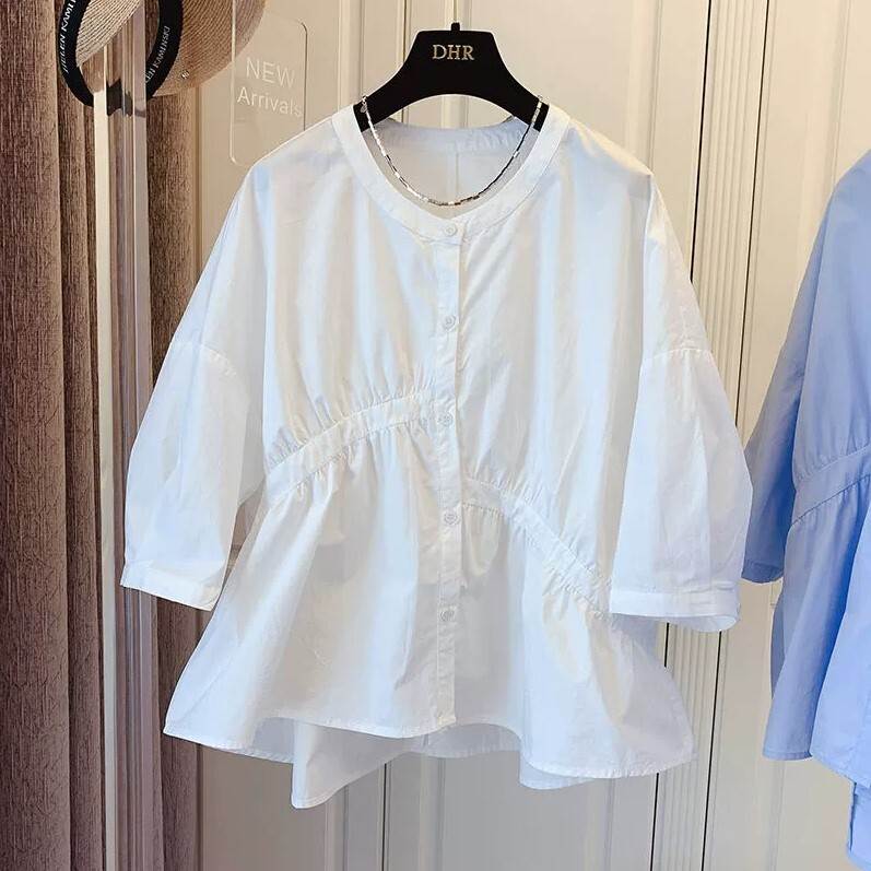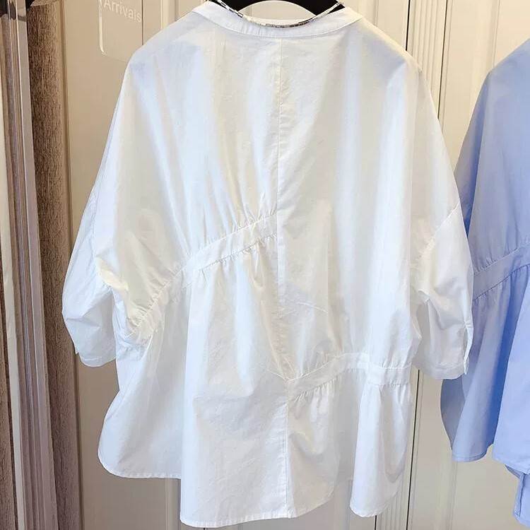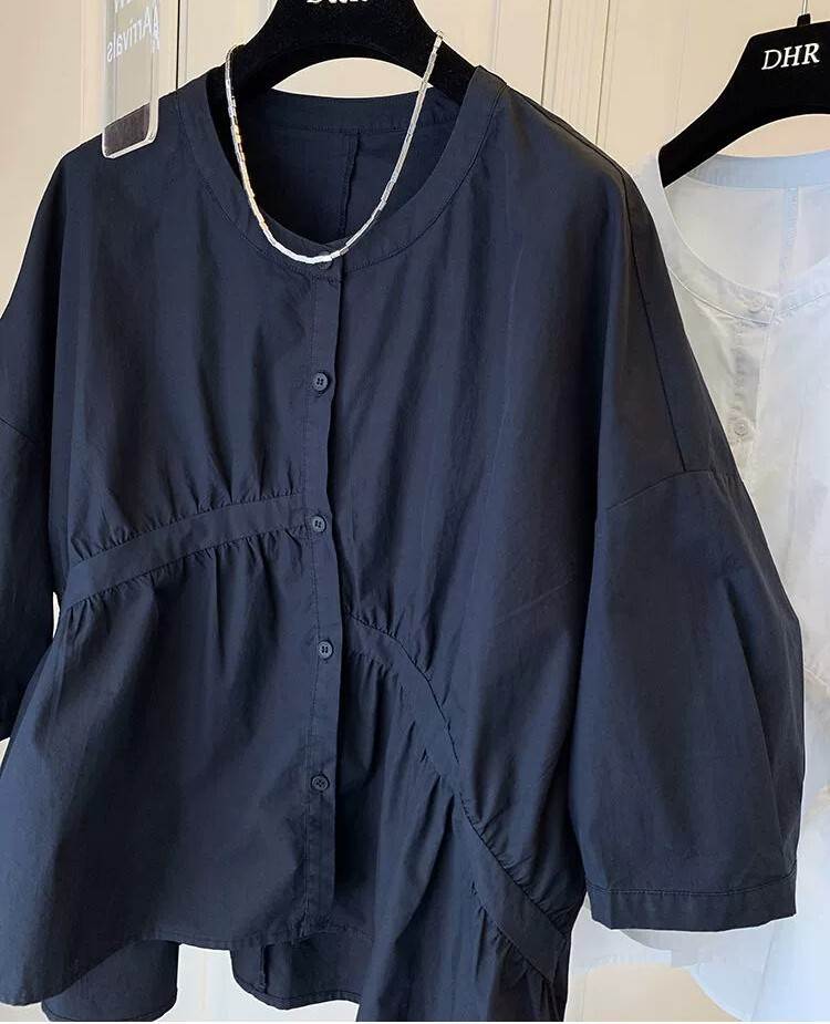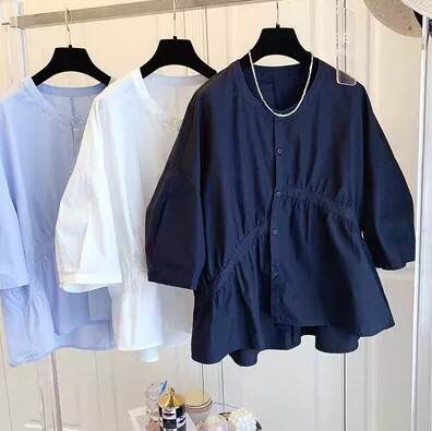 トップス ブラウス 袖あり 7分袖 七 トップス シャツ ブラウス 割引 ホワイト ブルー ブラック S M L XL 2XL 3XL
