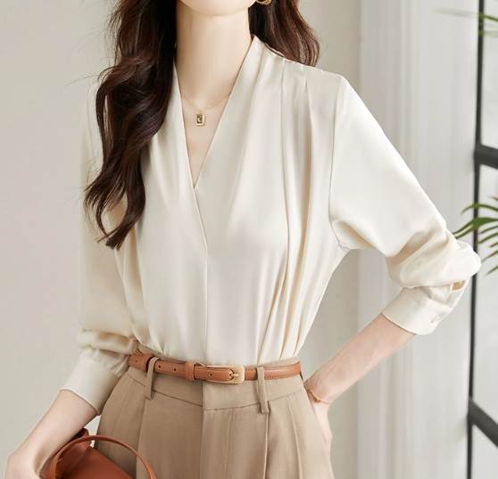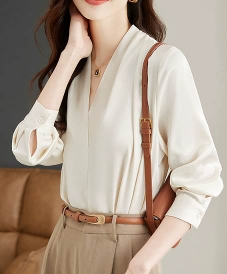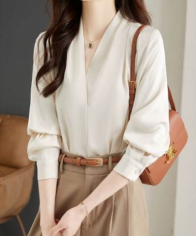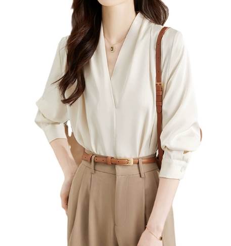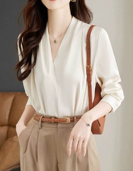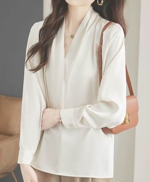 とろみ感のある柔らかな生地が優しくて上品なシフォンシャツ。Vネックデザインなのでネックレスが映えますし小顔効果も期待できます。トップスインしてスマートな印象にしても、裾を出して少しルーズに着こなしてもどちらでも◎