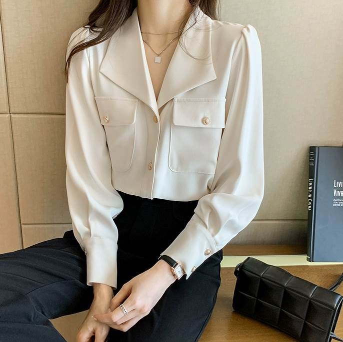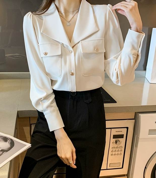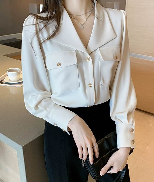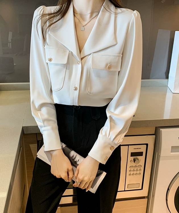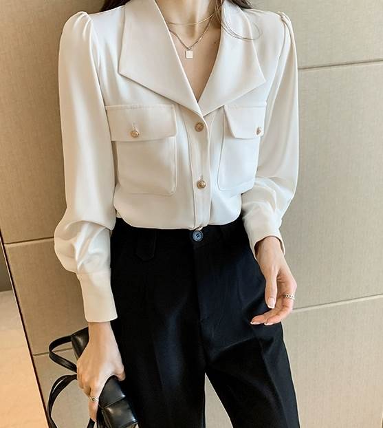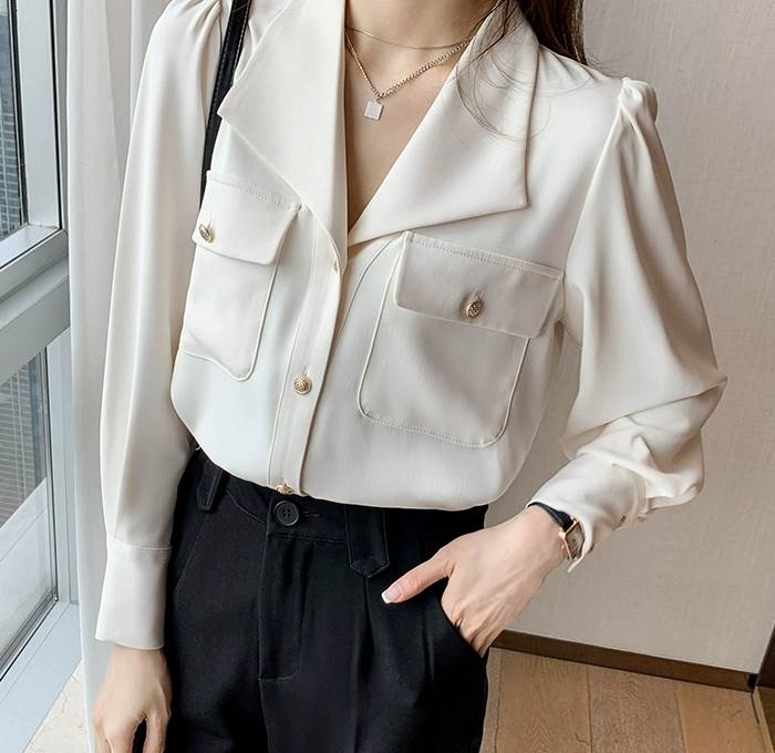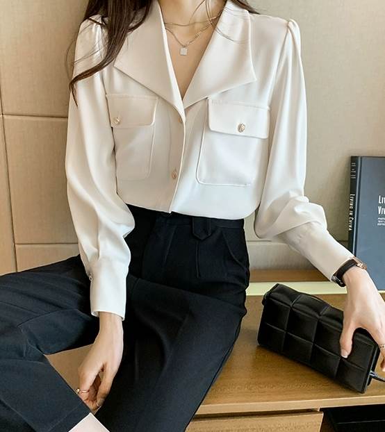 トップス シャツ 長袖 Vネック 襟付 レディースファッション 42%Off S M L XL 2XL