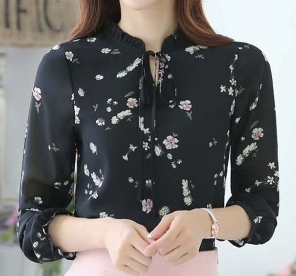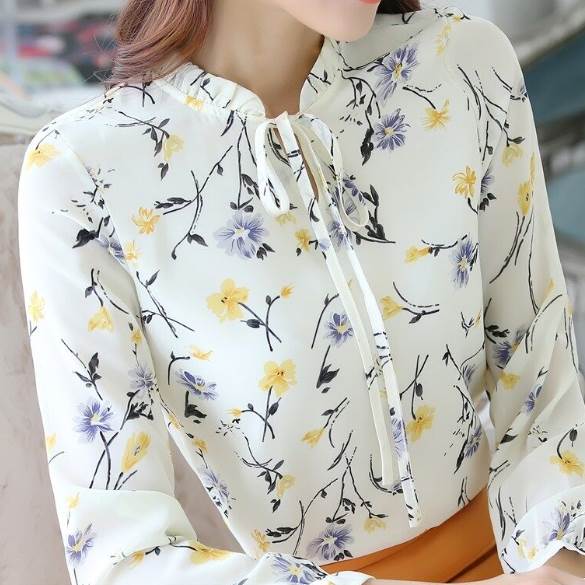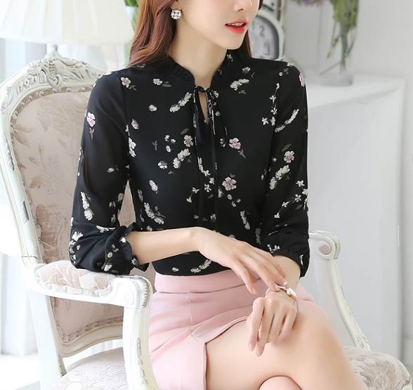 トップス シャツ シフォン 長袖 襟なし クルーネック リボン かわいい きれいめ シンプル 大人 おしゃれ かっこいい こなれ感 清楚 エレガント セクシー フォーマル 主役級 存在感 花柄 個性的