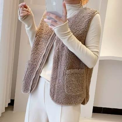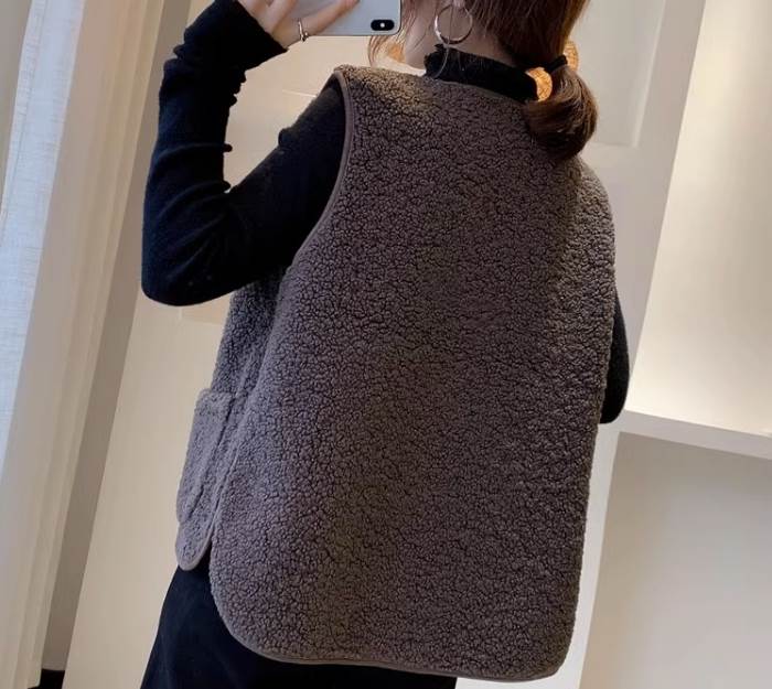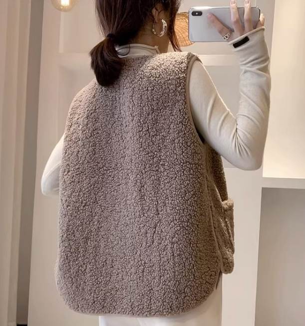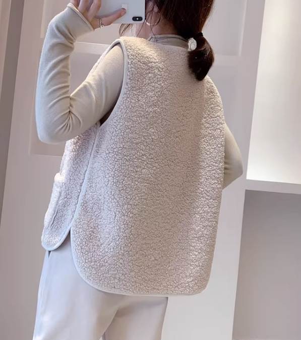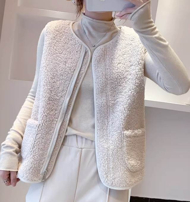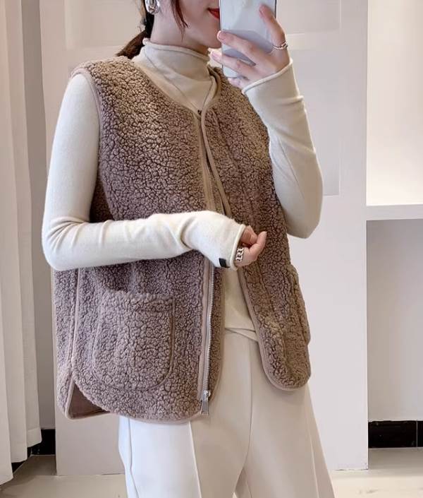 ふわふわ着心地のよいボア素材で、暖かく着用するだけでオシャレがきまる魅力のベスト。