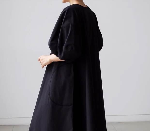 シンプルなデザインながら、ラウンドネックやポケットのアクセントでおしゃれ感も演出。