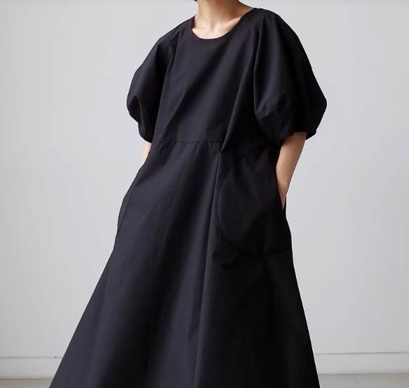 レディース ワンピース ロングワンピース フレアワンピース ロング丈 半袖 ボリューム袖 ラウンドネック ポケット かわいい 大人可愛い きれいめ シンプル 上品 かっこいい レトロ こなれ おしゃれ