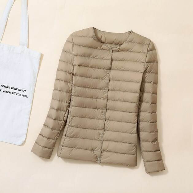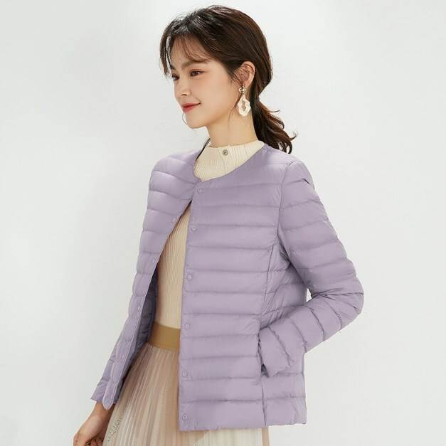 アウター ジャケット ダウン 長袖 モコモコ 前開き ボタン 可愛い きれいめ シンプル 大人 上品 おしゃれ かっこいい こなれ感 個性的 主役級 存在感 冬 30代 レディース ノーカラー 20代