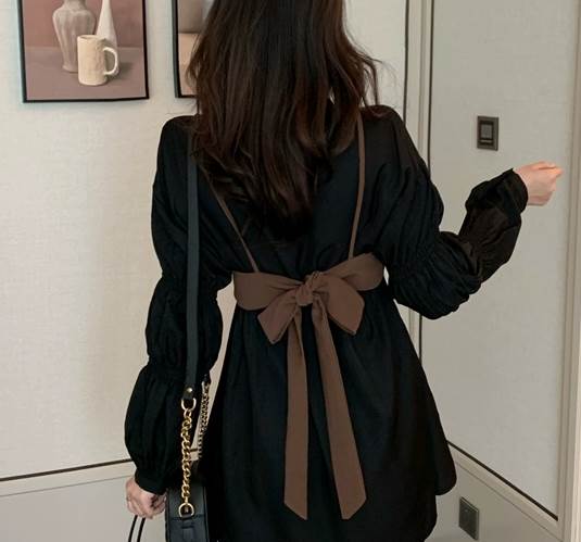 レディース ワンピース ミニワンピース フレアワンピース シャツワンピース ミニ丈 長袖 角襟 前開き 重ね着風 バックリボン かわいい 大人可愛い きれいめ シンプル おしゃれ かっこいい レ 上品