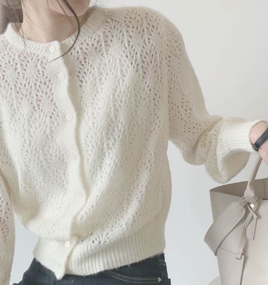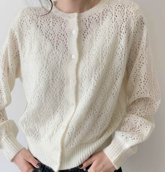 トップス カーディガン 袖あり 長袖 ラウンドネック ストレート 透かし編み サマーニット 大人可愛い きれいめ シンプル 大人 上品 おしゃれ 大人女子 エレガント 抜け感 清楚 無地 春 爽やか