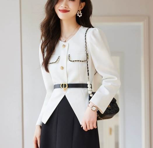 大人可愛いフレアスカートと上品な雰囲気のジャケットで、オフィスやデート、お出かけなど幅広いシーンで活躍します。