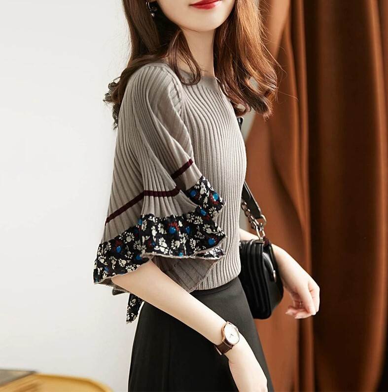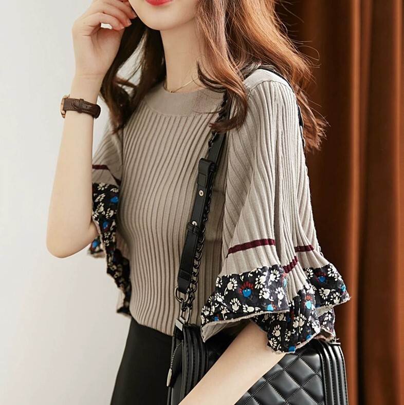 トップス ニット フリル袖 花柄 5分 トップス ニット セーター セーター お得なセール S M L XL