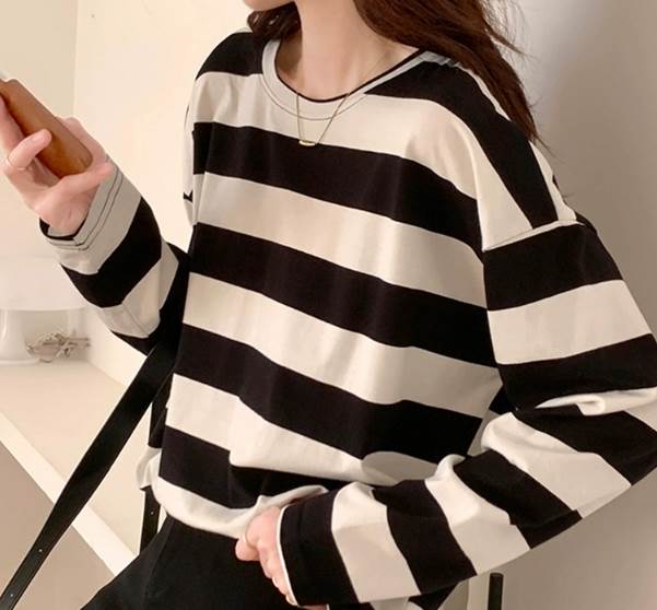 レディース トップス ロンT Tシャツ 長袖 ドロップショルダー 萌袖 ラウンドネック ワイド 大人可愛い シンプル カジュアル ラフ メンズライク ボーイッシュ ルーズ ボーダー 春 秋 キュート