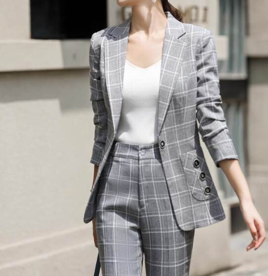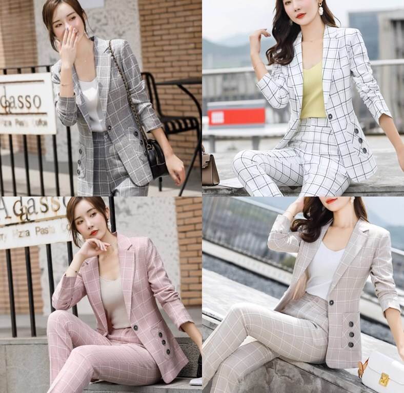スーツ トップス ボトムス パンツ セットアップ ジャケット ズボン 上着 ロング丈 長袖 スリム ストレート ポケット 上下セット 2点セット ツーピース かわいい きれいめ シンプル 上品 お洒落 かっこいい 大人可愛い 大人女子 こなれ感 個性的 クール フレンチ ハイエンド マニッシュ チェック柄 格子柄 春 秋 レディース ビジネス OL 通勤 学生 お出かけ ファッション コーデ トレンド サイズ S M L XL 2XL 3XL 4XL 5XL 色展開 グレー ホワイト ブラウン ピンク
