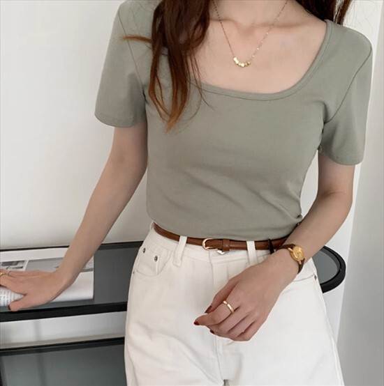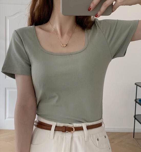 トップス Tシャツ レディース スクエアカラー ローネック 美背中 半袖 春夏 無地 鎖骨 スリム スタイル レギュラー丈 スリムフィット かわいい きれいめ 大人可愛い 上品 おしゃれ 大人女子 通勤 通学 個性的 無地 クール シック トレンディ カジュアル デート お出かけ お揃い アウトドア 休日 リゾート 旅行 キャンプ コテージ グランピング 主役級 存在感 フレンチ 体型カバー モテ 重ね着 新作 インスタ映え サイズ S M L XL色展開 ブラック ホワイト モスグリーン 大人カラー