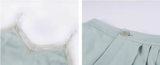 L /着丈(ジャケット) 76 /肩幅 43 /バスト(ジャケット) 112 /袖丈 44 /袖口 33 /着丈(キャミソール) 48 /バスト(キャミソール) 92 /スカート丈 41 /ウエスト 72~82 /ヒップ 102