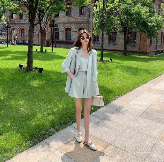 大人っぽく上品な印象の3点セット。テーラードジャケット、ショートパンツ、キャミソールの組み合わせで、おしゃれな着こなしを叶えます。トレンドのトロミ感のある素材を使用しているため、女性らしい抜け感とこなれ感が演出できます。