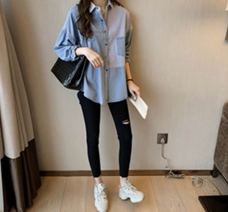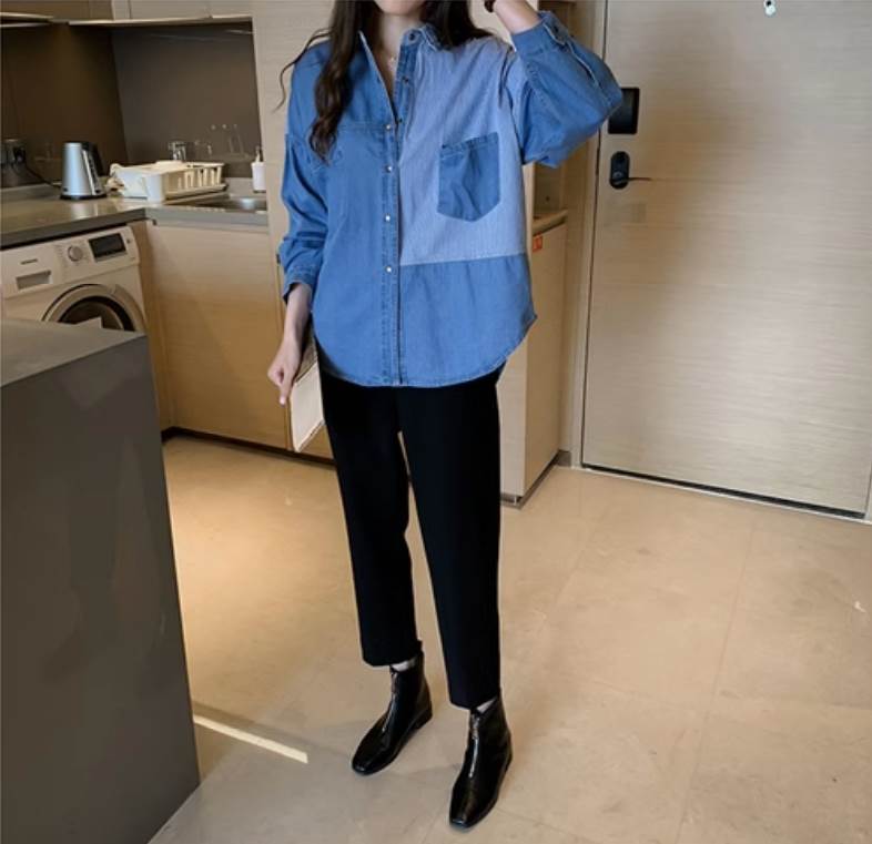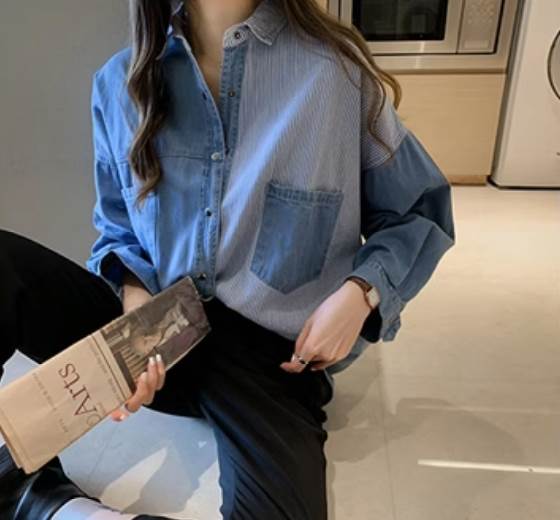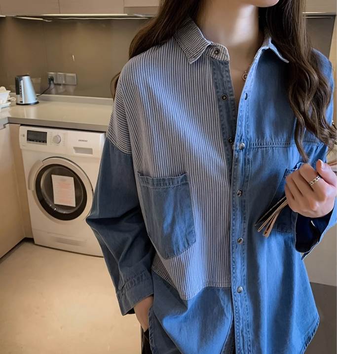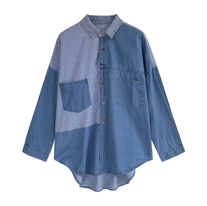 デニムシャツ トップス シャツ レギュラー丈 Vネック 襟付き 角襟 ストレート 前開き 大人可愛い カジュアル 大人 おしゃれ お洒落 かっこいい 大人可愛い 大人女子 こなれ感 ラフ メンズライク ボーイッシュ ルーズ 個性的 抜け感 ストライプ 春 秋 10代 20代 30代 40代 50代 60代 レディース 女性用 ママ 通勤 学生 通学 お出かけ 普段使い 韓国系 オルチャン ファッション コーデ スタイル 楽ちん トレンド 流行 サイズ S M L XL 2XL ゆったり ブルー