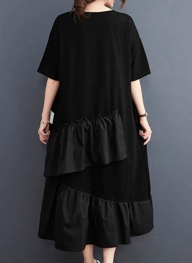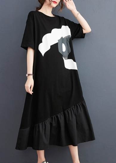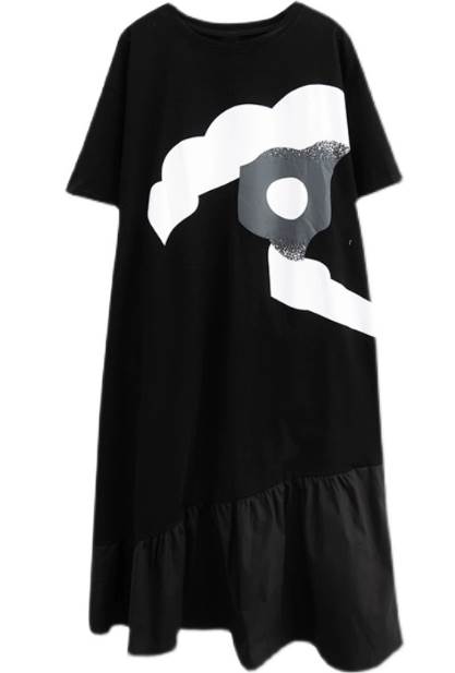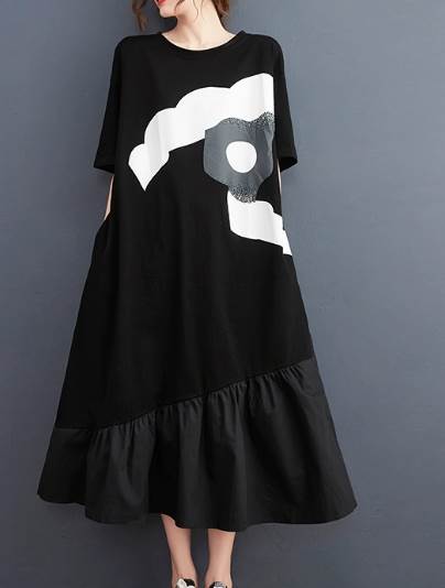 レディース ワンピース ロング 半袖 5分袖 ラウンドネック ワイド フレア タックプリーツ Aライン 切り替え ポケット 薄手 大人可愛い カジュアル おしゃれ レトロ ラフ ガーリー ルーズ 個性的 クール エレガント 主役級 存在感 花柄 夏 10代 20代 30代 デート お出かけ イベント 旅行 海 レストラン 女子会 休日 ショッピング コンサート ライブ カフェ フェス 楽ちん 体型カバー 普段使い L XL 大きいサイズ ゆったり 黒 ブラック モノトーン