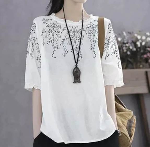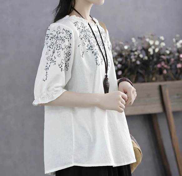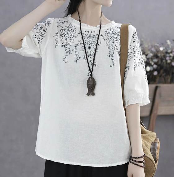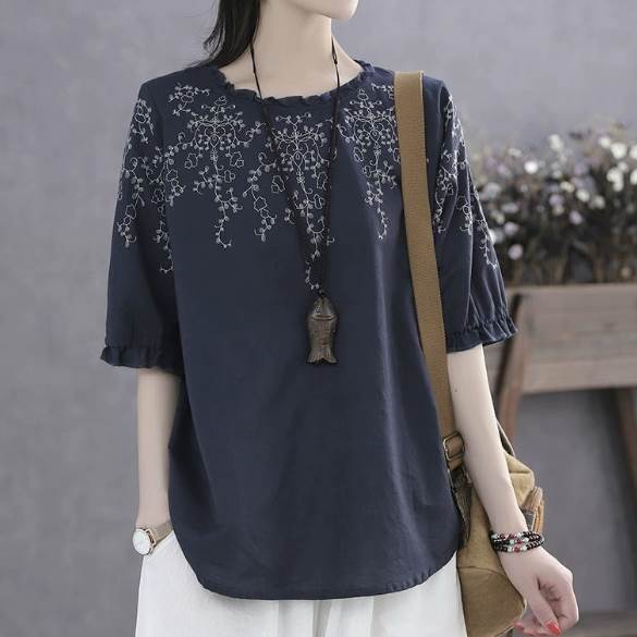 トップス カットソー 袖あり 5分袖 襟なし ラウンドネック 刺 かわいい 大人可愛い きれいめ シンプル カジュアル 大人 上品 おしゃれ かっこいい レトロ 大人女子 こなれ感 クール モダン フォーマル 個性的 主役級 存在感 柄 春 夏 秋 20代 30代 レディース 女性用 ママ OL 通勤 学生 通学 デート お出かけ 公園デビュー 女子会 お泊まり 休日 旅行 リゾート イベント 着回し 重ね着 M L XL 2XL 3XL 4XL ファッション コーデ スタイル ゆったり 体型カバー