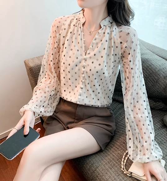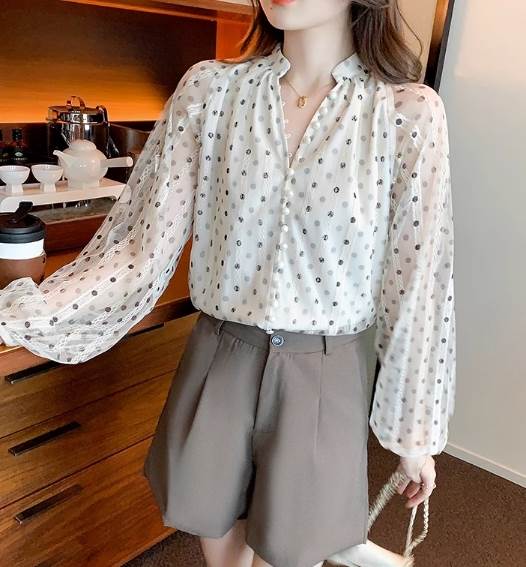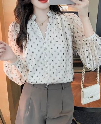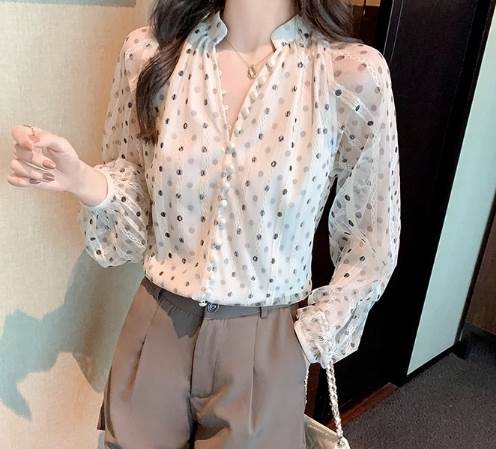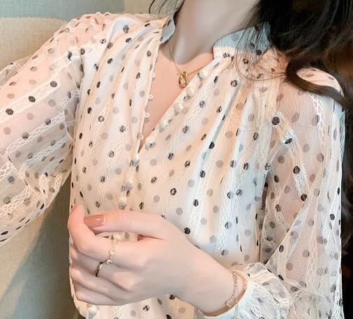 トップス シャツ 水玉 長袖 Vネック レディースファッション 割引 S M L XL 2XL