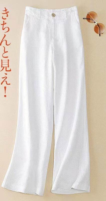 パンツ きれいめ 大人 ナチュラル カジュアル リネン ボトムス ストレートパンツ ロング丈 ストレート ワイド ポケット ハイウエスト 綿 麻 薄手 かわいい シンプル 上 コットン
