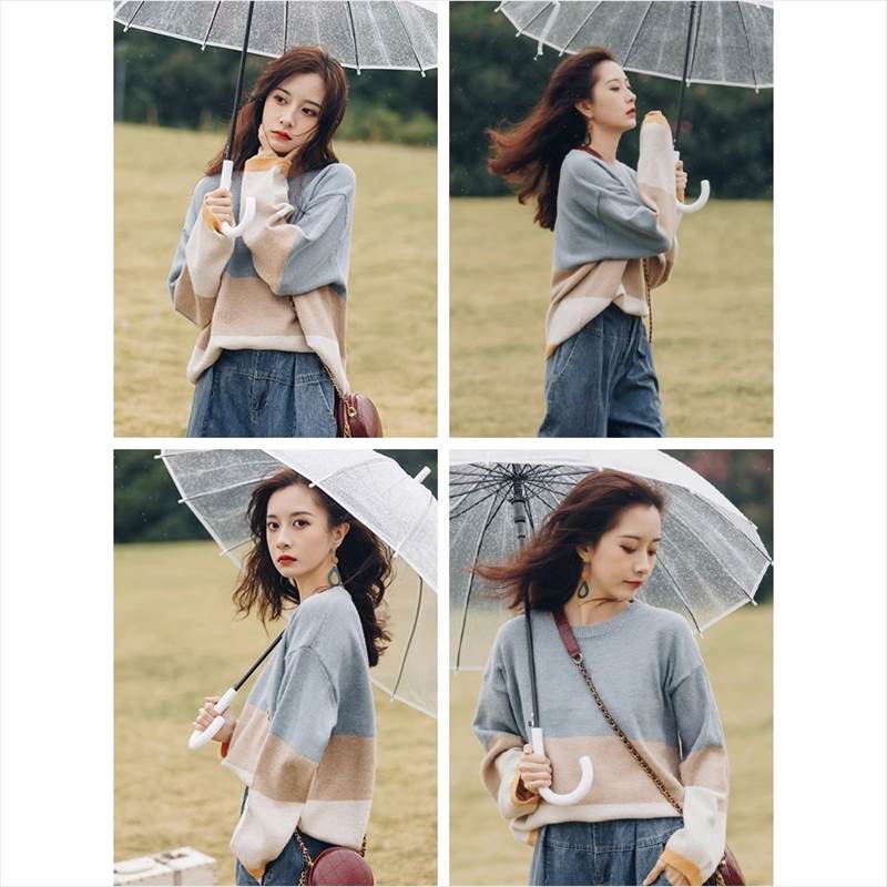 個性的 トップス セーター プルオーバー 長袖 萌袖 ラウンドネック かわいい シンプル おしゃれ レトロ 存在感 ボーダー 薄手 ルーズ 春 秋 冬 10代 30代 レディース ミディアム丈 20代