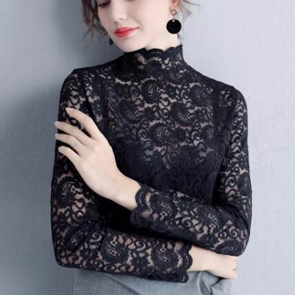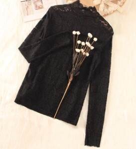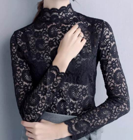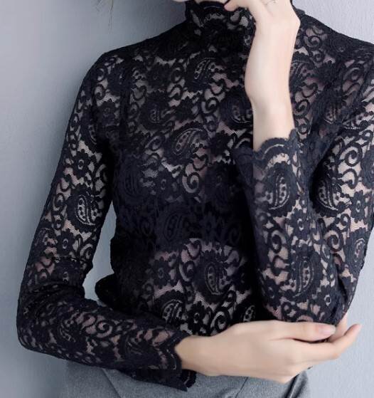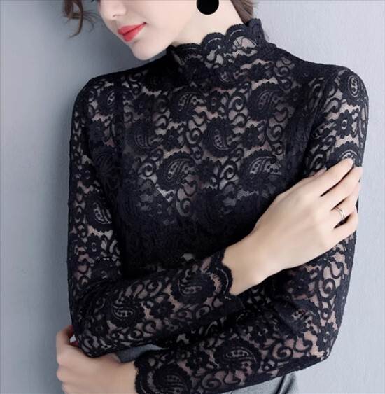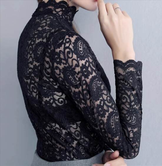 プルオーバー レース トップス 長袖 インナー ブラウス ハイネック スタンドカラー 袖あり タイト 薄手 メッシュトップ 萌袖 スリム おしゃれ 個性的 きれいめ シンプル キュート かわいい