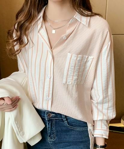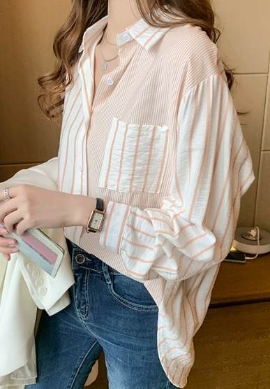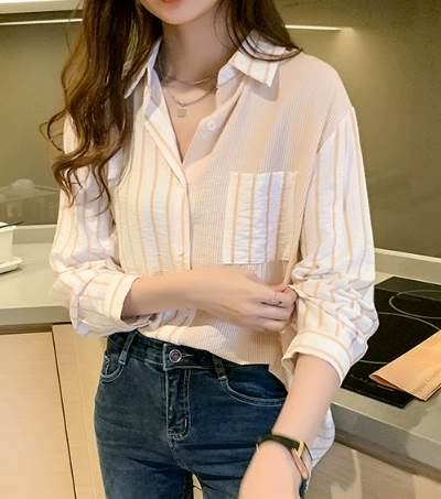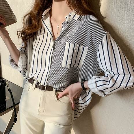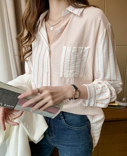 レディース トップス シャツ 長袖 襟付き 角襟 ストレート ポケット 切り替えデザイン 大人可愛い きれいめ カジュアル 上品 おしゃれ かっこいい ラフ メンズライク ボーイッシュ ルーズ 個性的 ナチュラル 清潔感 爽やか ストライプ 春 秋 20代 30代 40代 50代 60代 デート お出かけ アウトドア キャンプ イベント 旅行 レストラン 休日 お花見 カフェ 体型カバー 普段使い 着回し S M L XL 2XL ゆったり オーバーサイズ オレンジ ネイビー