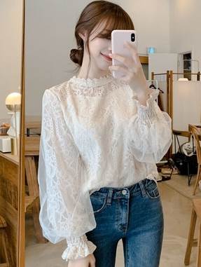 プチハイネックと袖部分がチュールで包まれているのが特徴的なエレガントなレーストップスです。春秋はそのまま、冬にはニットのインナーとしても重宝します。S~XLの4サイズ展開で、幅広い体型の方に対応します。大切な日に、存在感を放ちながら、上品で可愛らしいスタイルを実現してください。
