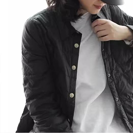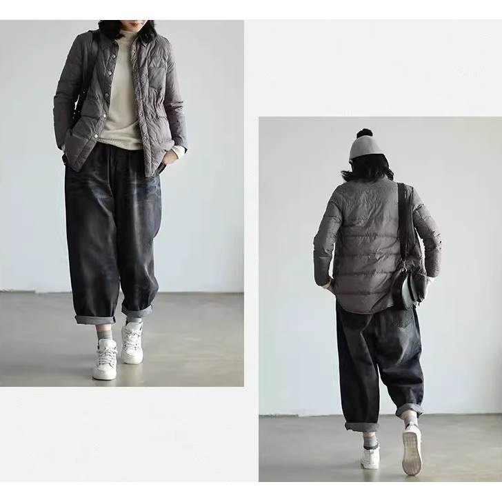 モダンなデザインのショート丈ダウンコートです。きれいめからカジュアルまで、スタイリングに合わせて幅広く着回せます。前開きはボタン仕様で、パーティーシーズンにはワンピースの上からさらっと羽織っても可愛いですね。