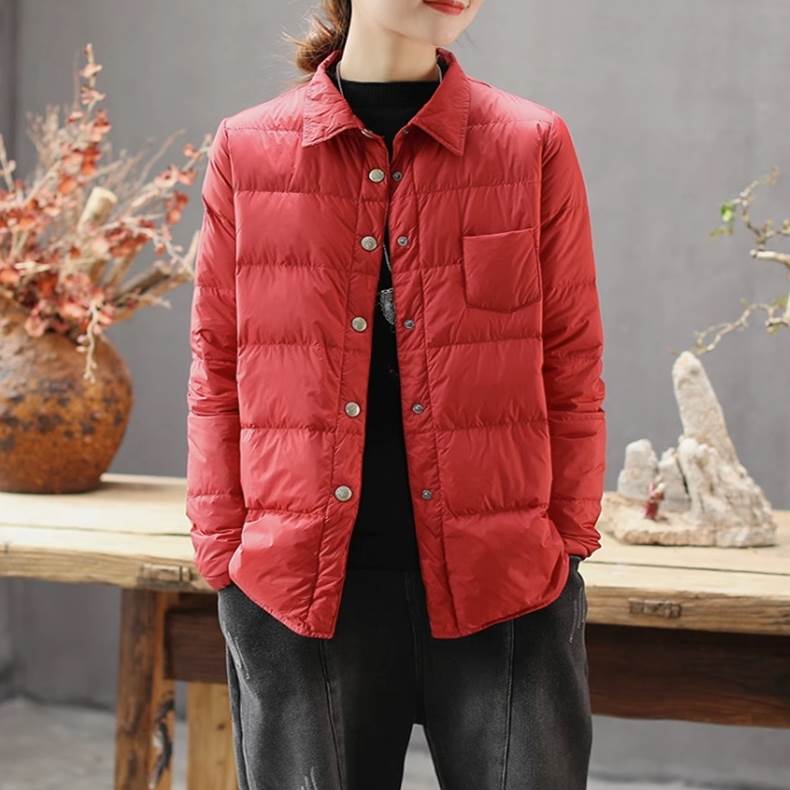 アウター コート ジャケット ダウンコート ショート ショート丈 袖あり 長袖 襟付き ストレート ポケット 前開き ボタンあり ダウン きれいめ シンプル カジュアル 大人 上品 おしゃれ お洒落 かっこいい レトロ 大人女子 無地 秋 冬 20代 30代 40代 レディース 女性用 OL 通勤 デート お出かけ 休日 イベント リゾート 旅行 高原 ガーデン 着回し 普段使い ファッション コーデ スタイル サイズ M L XL 色展開 黒 ブラック 赤 レッド 灰色 グレー ベージュ 緑 グリーン