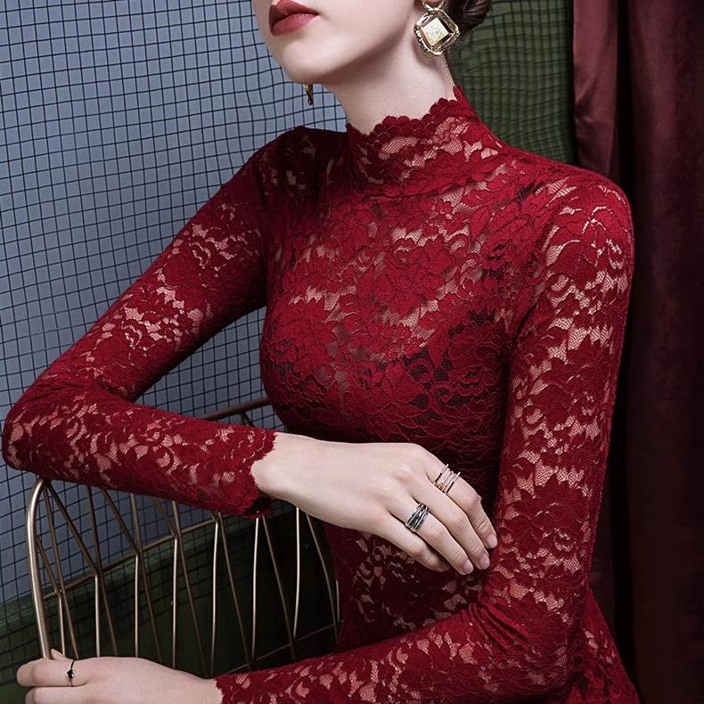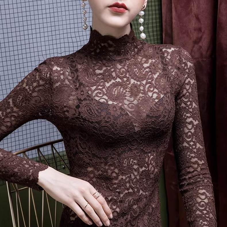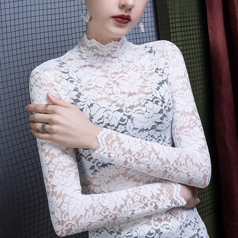 トップス ブラウス 袖あり 長袖 ハイネック レース 透け感 シースルー きれいめ 大人 上品 おしゃれ お洒落 セクシー エレガント 花柄 フラワー 春 夏 20代 30代 レディース 女性用 デート お出かけ 休日 パーティー 高原 ホテル ガーデン レストラン 着回し 普段使い 重ね着 韓国 韓国系 ファッション コーデ スタイル サイズ S M L XL 色展開 白 ホワイト 黒 ブラック 赤 レッド 青 ブルー 緑 グリーン 茶色 ブラウン ピンク ネイビー アプリコット フラワーアプリコット