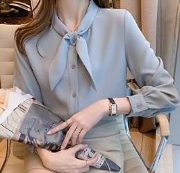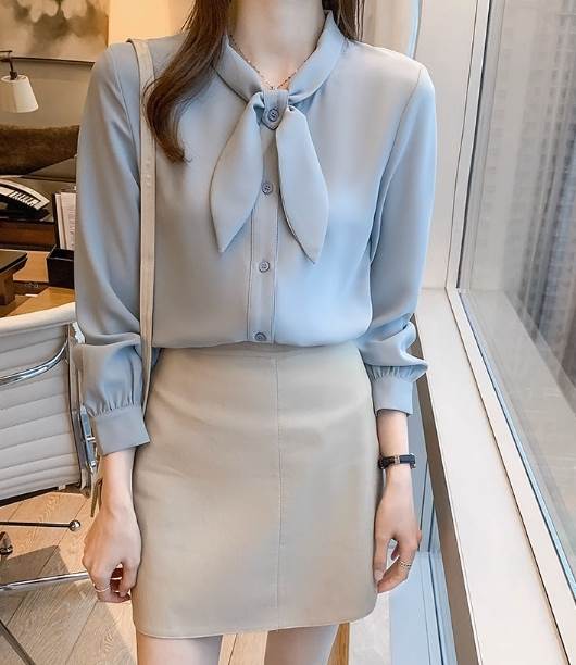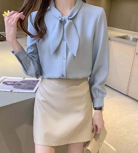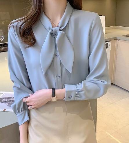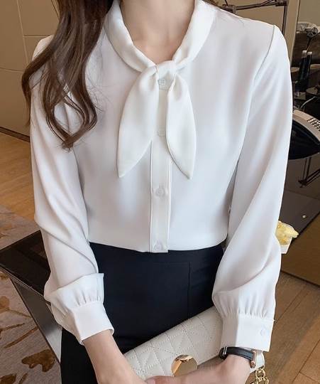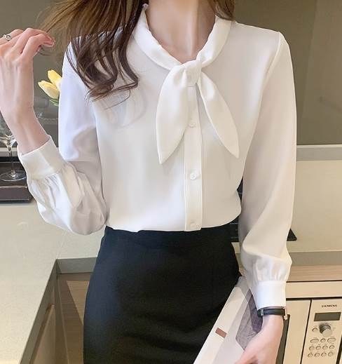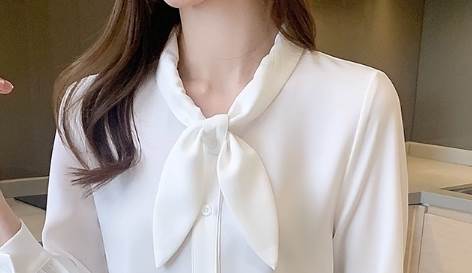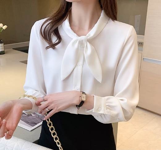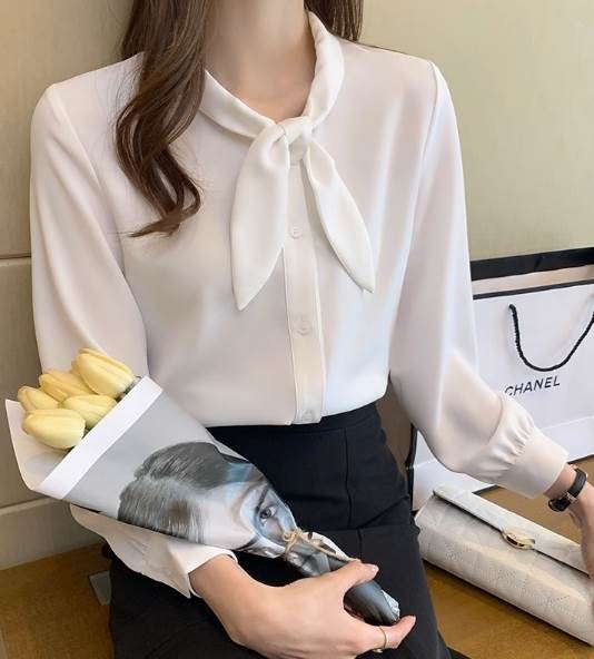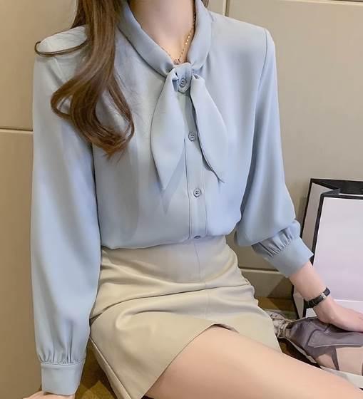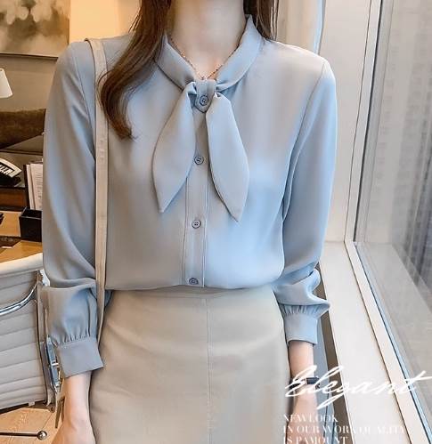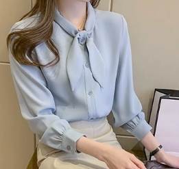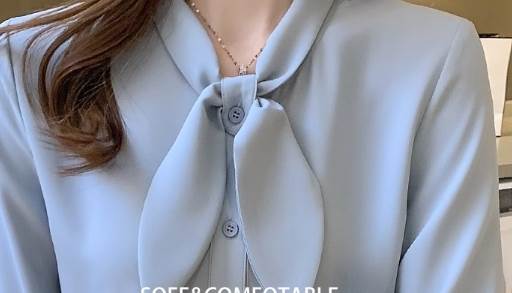 トップス シャツ 長袖 清楚 スカーフ トップス シャツ ブラウス 42%Off ホワイト ブルー S M L XL 2XL