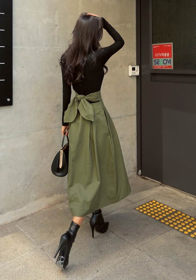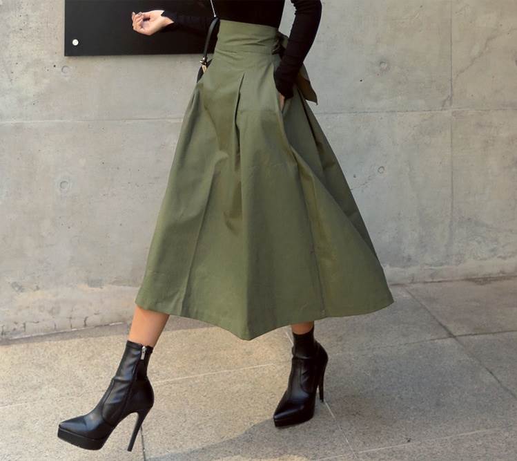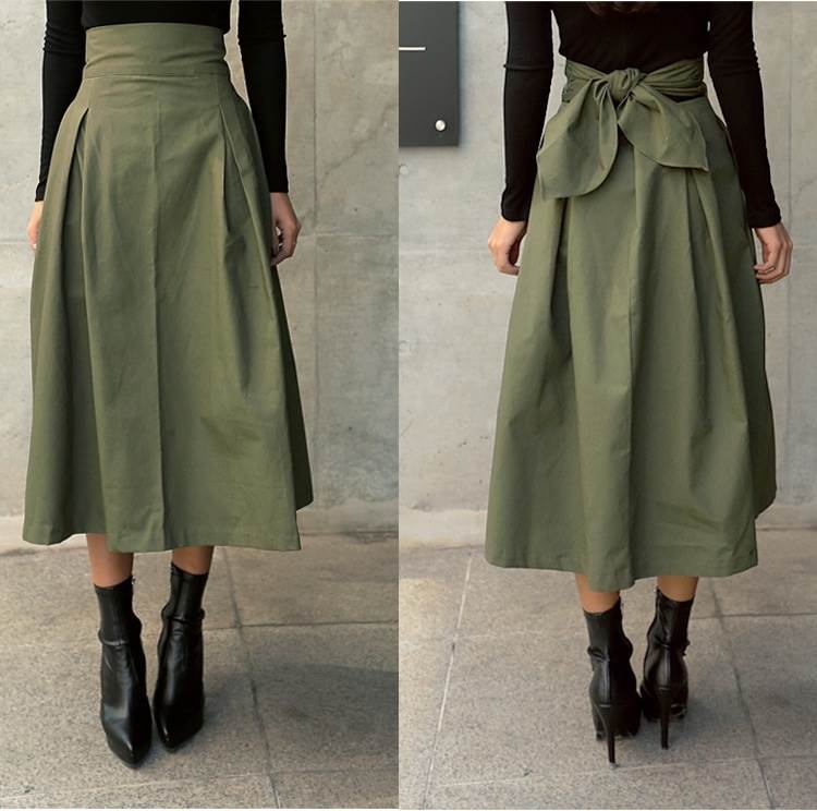 スカート タックスカート フレアスカート ロングスカート ミモレ フレア Aライン タック ポケット バックリボン タック 中厚手 大人可愛い きれいめ シンプル カジュアル 上品 こなれ感 ガーリー 主役級 かっちり 都会的 アクティブ 無地 春 夏 秋 通勤 学生 通学 デート お出かけ 旅行 女子会 休日 合コン カフェ アースカラー オルチャン 暖かい 普段使い モテ トレンド インスタ映え S M L XL アーミーグリーン
