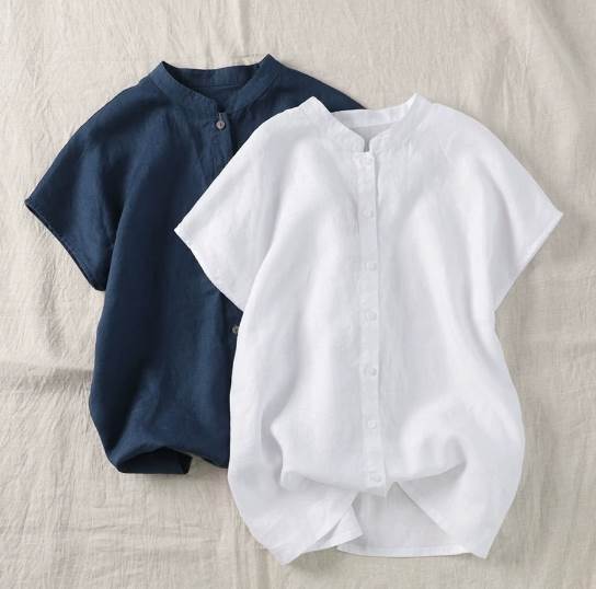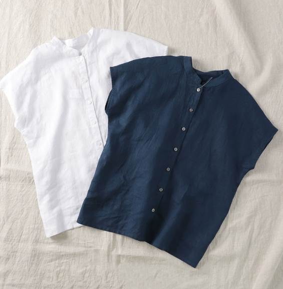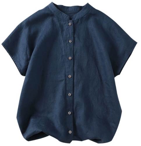 レディース トップス シャツ 半袖 スリットネック ストレート 前開き リネン コットン シンプル カジュアル ラフ メンズライク ボーイッシュ ベーシック ナチュラル 清潔感 無地 夏 会議 涼しげ