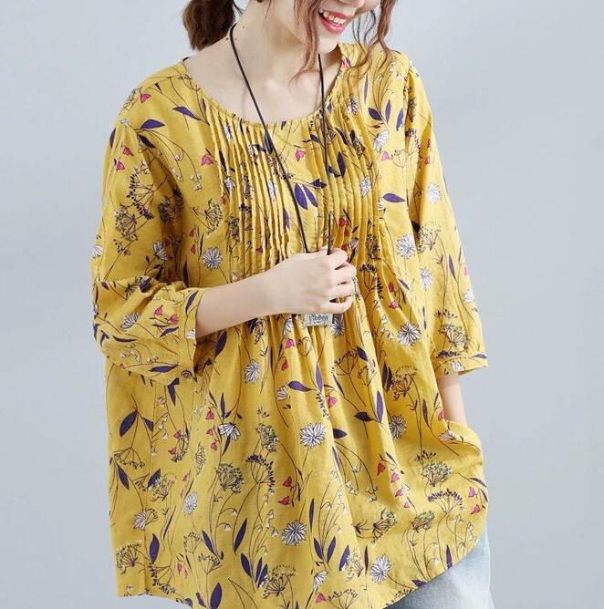 トップス ブラウス 綿麻 コットンリネン 袖あり 7分袖 七分袖 ラウンドネック 襟なし ワイド 綿 麻 リネン 薄手 コットン かわいい 可愛い カジュアル 大人 上品 おしゃれ お洒落 レトロ アジアン 大人可愛い 大人女子 こなれ感 ラフ ラブリー キュート ガーリー 個性的 抜け感 柄 花柄 春 夏 秋 10代 20代 30代 40代 50代 60代 レディース 女性用 マタニティ 学生 通学 デート お出かけ 休日 着回し 普段使い 楽ちん 体系カバー ゆったり ゆる ワンサイズ ふんわり