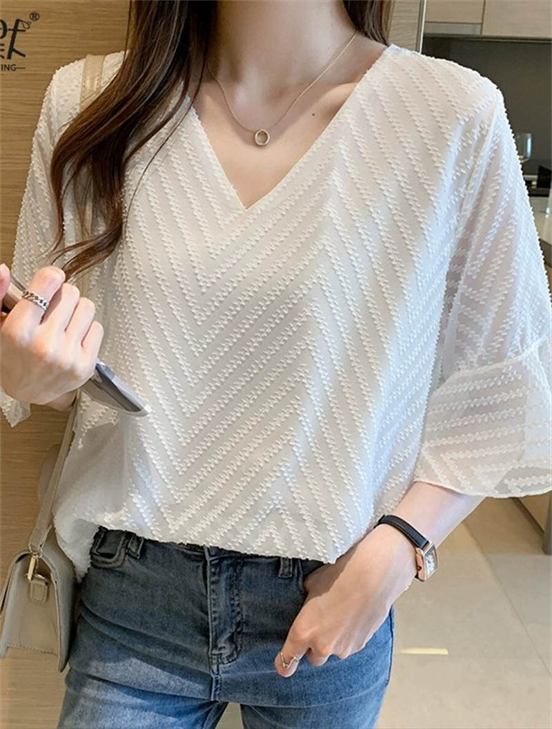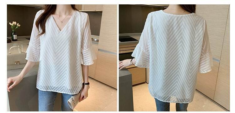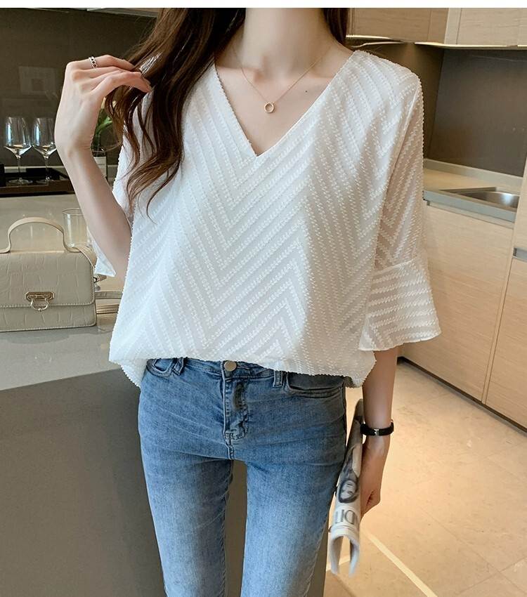 トップス ブラウス フリル袖 5分袖 トップス シャツ ブラウス 42%Off S M L XL 2XL
