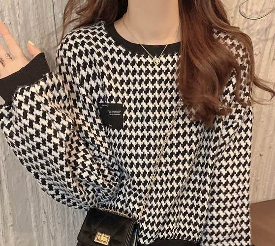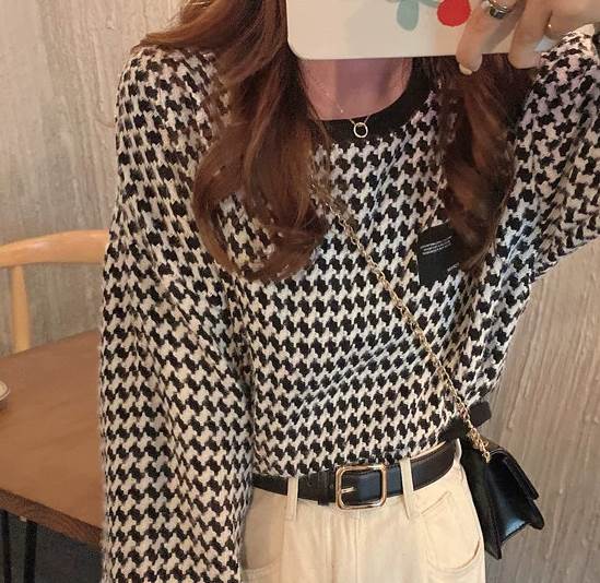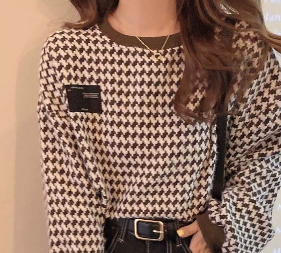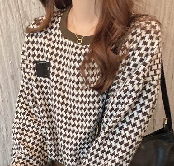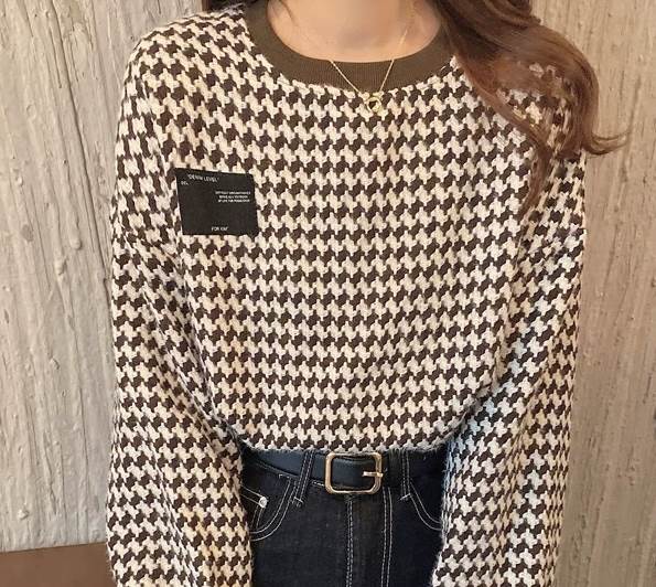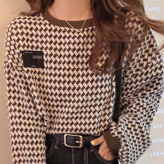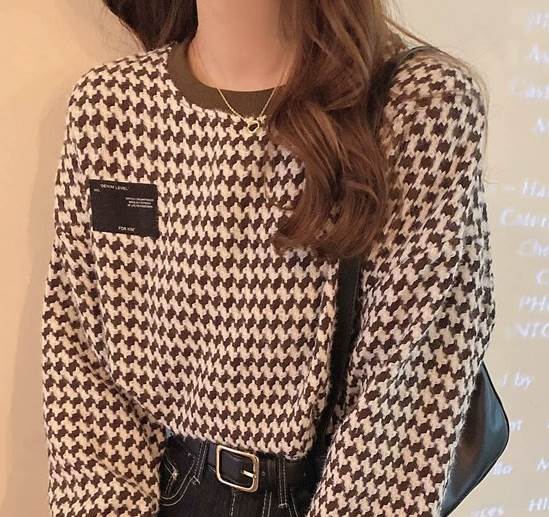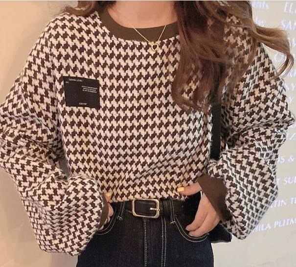 レディース トップス カットソー プルオーバー 長袖 ボリューム袖 ラウンドネック おしゃれ かっこいい レトロ こなれ感 個性的 主役級 存在感 抜け感 ラフ キュート ナチュラル ベーシック メンズライク クール OL 通勤 オフィス 学生 通学 ママ マタニティ 秋 冬 千鳥格子柄 デート お出かけ お泊まり イベント 公園 女子会 休日 アウトドア キャンプ カフェ ショッピング 旅行 リゾート 合コン コンパ レストラン 重ね着 普段使い 着回し 定番 ワンサイズ モテ ゆったり 楽ちん