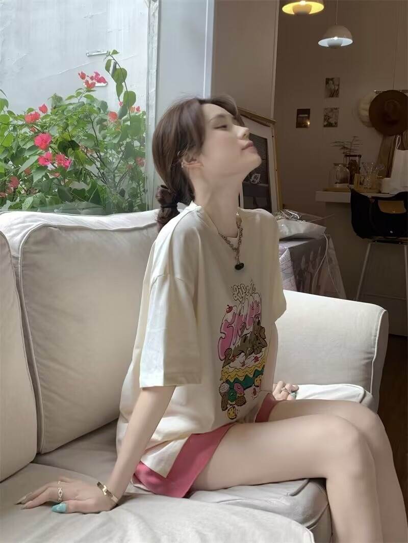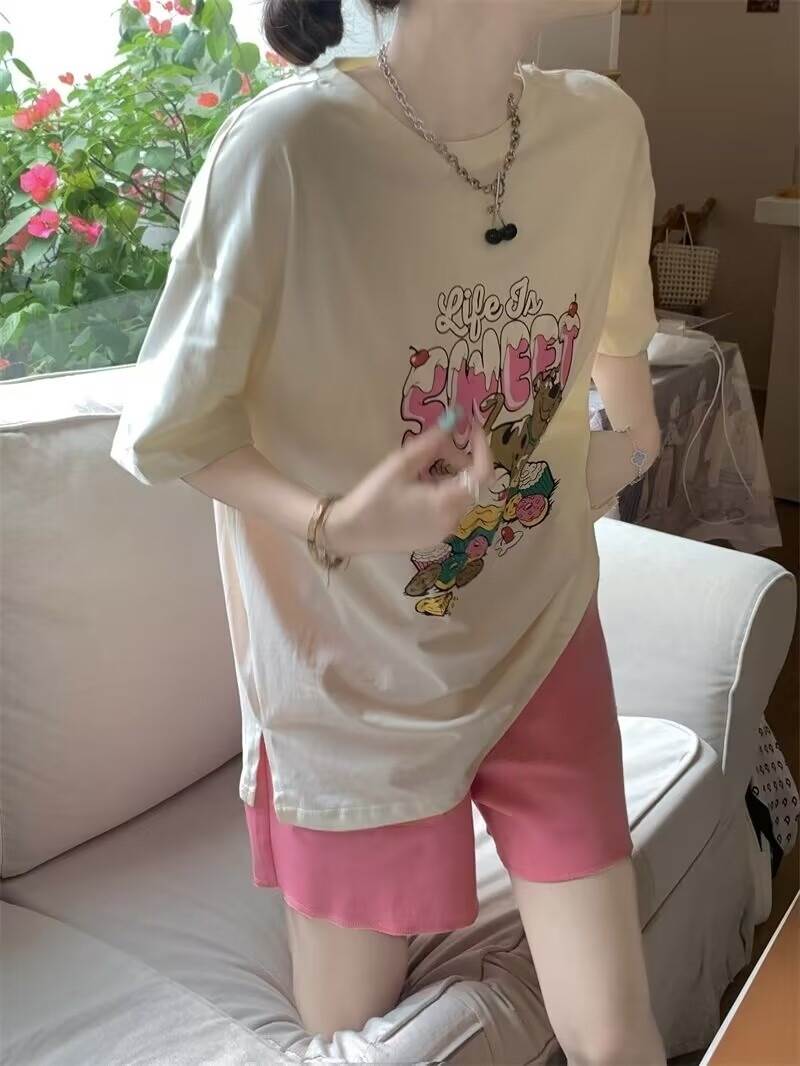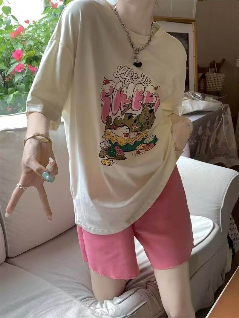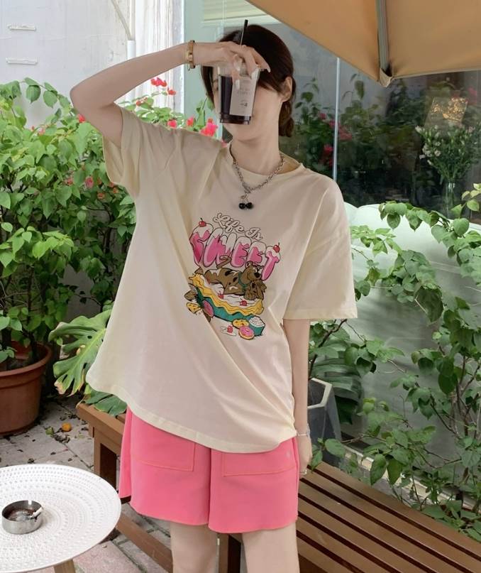 トップス ボトムス パンツ セットアップ ルームウェア パジャマ Tシャツ 部屋着 寝巻き ミニ ミニ丈 ショート ショート丈 袖あり 半袖 5分袖 五分袖 ラウンドネック ストレート ワイド かわいい 大人可愛い きれいめ シンプル カジュアル 大人 上品 おしゃれ お洒落 かっこいい レトロ 大人女子 こなれ感 ラフ メンズライク マニッシュ ボーイッシュ 個性的 クール モード系 エレガント モダン 主役級 存在感 プリント 春 夏 秋 10代 20代 30代 レディース 女性用 女子会 お泊まり