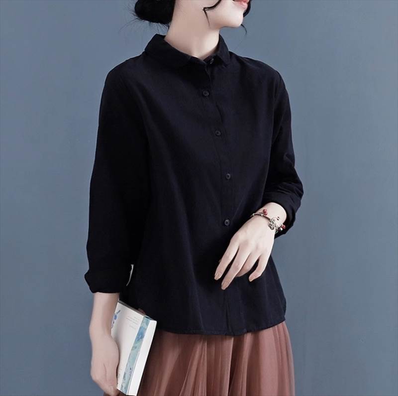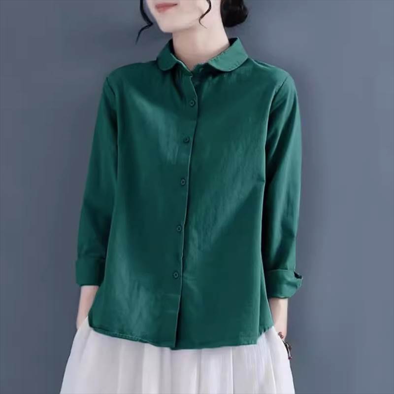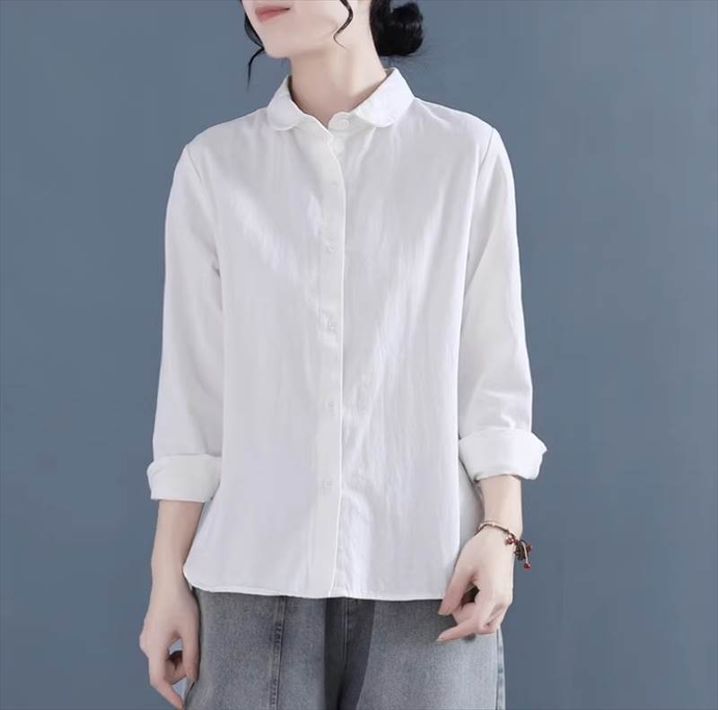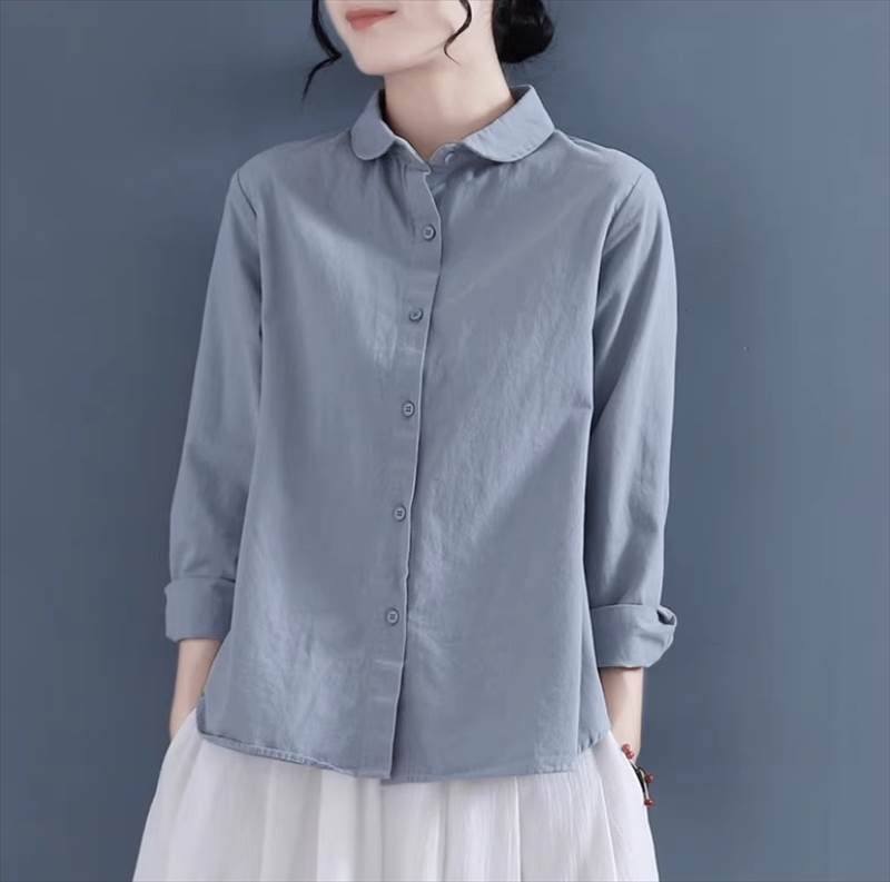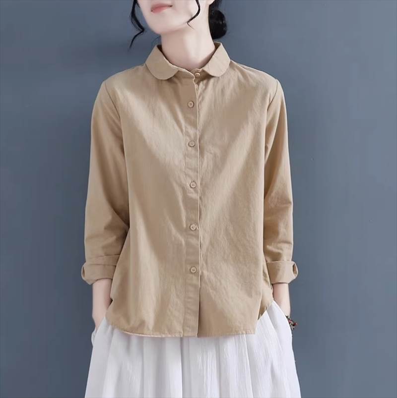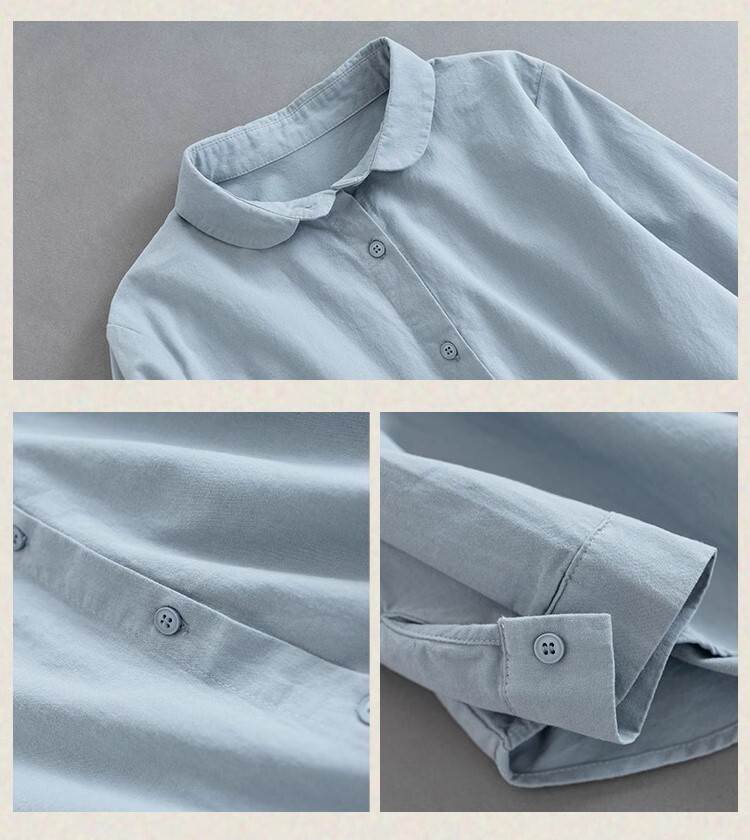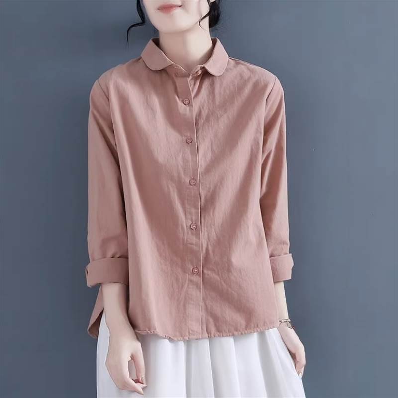 トップス シャツ ミドル丈 長袖 襟付き 丸襟 ストレート ボタン 前開き かわいい 大人可愛い きれいめ シンプル カジュアル おしゃれ ラフ 無地 春 秋 10代 30代 レディース カラ 20代